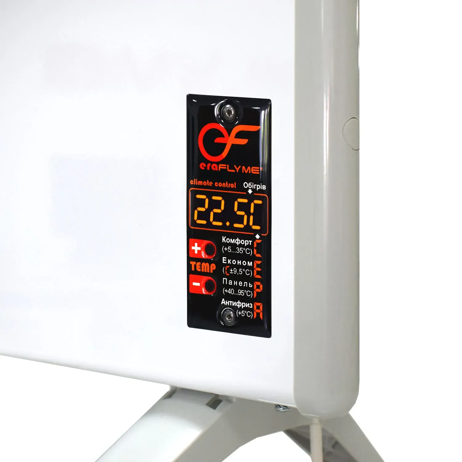 Електроконвектор швидко і ефективно натопить будь-яке Ваше приміщення в холодну пору року. За типом опалення обігрівач є конвективним - нагріває повітря, завдяки природній циркуляції. Корпус електроконвектору виконаний з металу і покритий високоякісною білою порошковою фарбою. Усередині обігрівача розташовується якісний гольчастий ТЕН, вироблений німецькою компанією «Eichenauer». Дизайн - мінімалістичний і сучасний. У правому нижньому кутку електро конвектора розташовується терморегулятор, який забезпечує комфортним користуванням, індивідуальним налаштуванням температури, економною витратою електрики і безпекою.