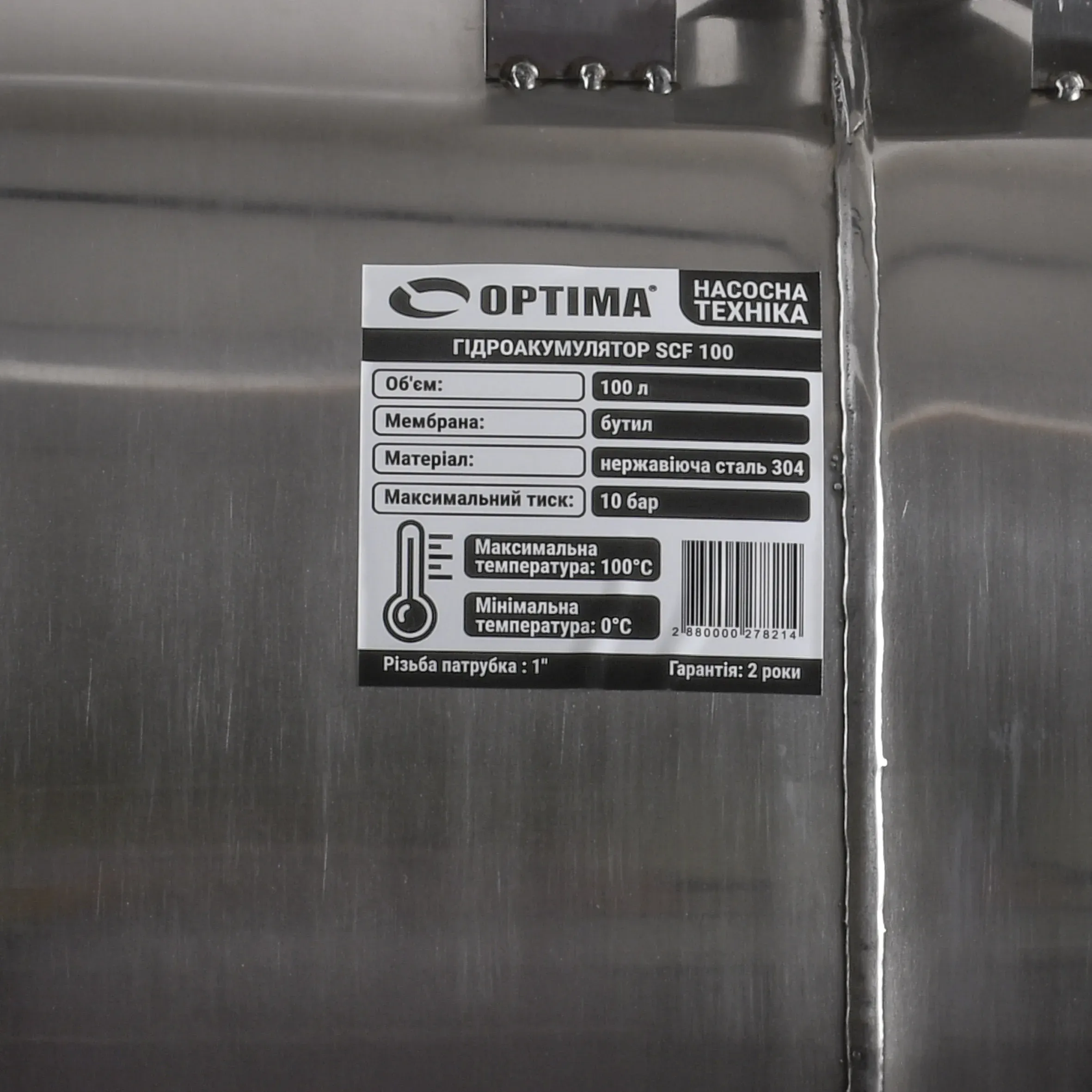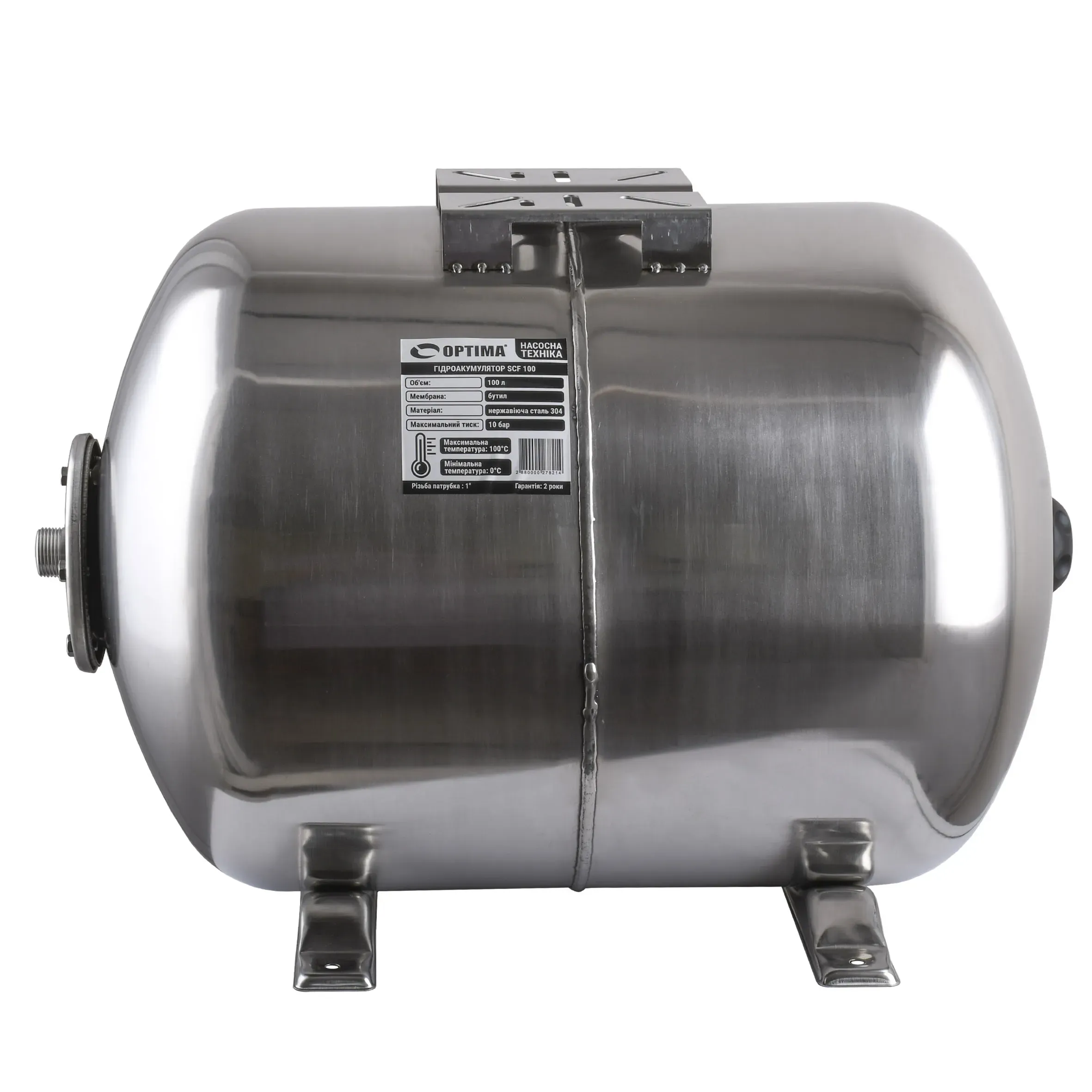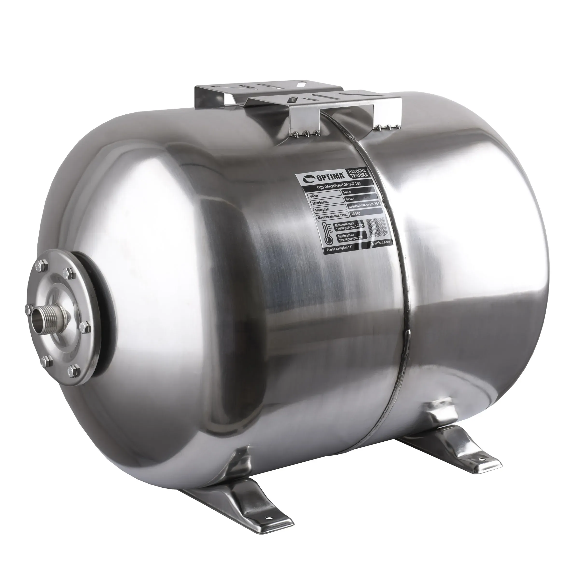 Гідроакумулятор 100л optima 10bar гор. нержавійка