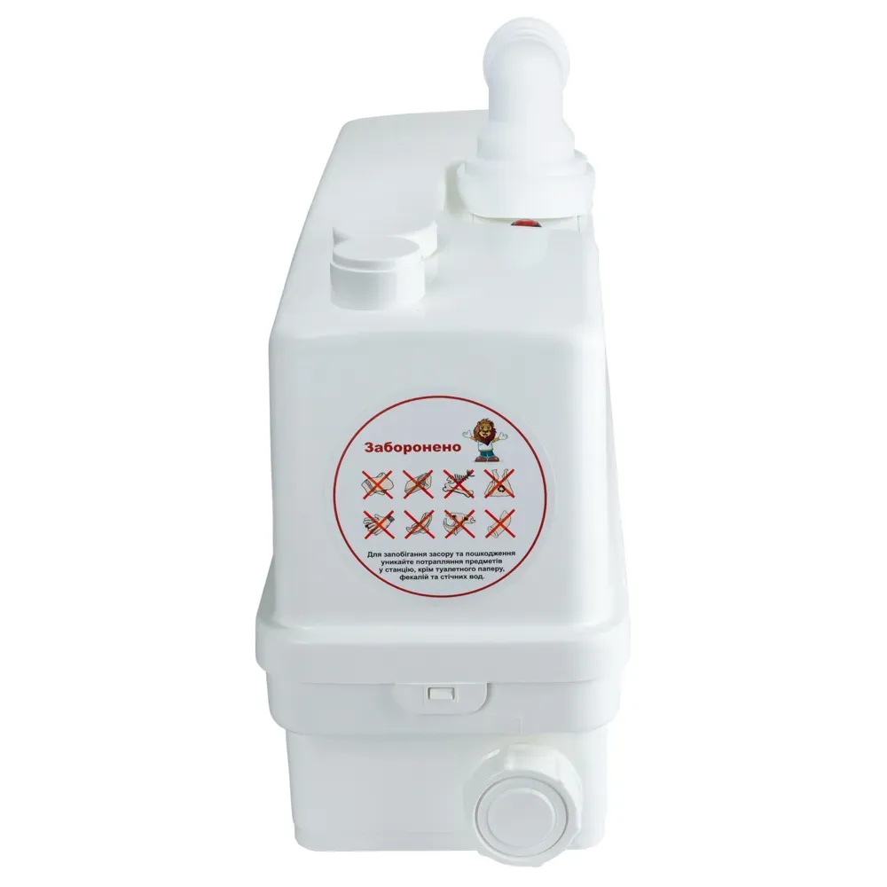 Компактна автоматична каналізаційна установка оснащена насосом з ріжучим механізмом і призначена для перекачування побутових стічних вод під тиском з житлових приміщень (туалетів, умивальників, ванн, душових кабін, пральних і посудомийних машин), де вони не можуть відводитися в каналізаційну систему самопливом. Каналізаційна станція не повинна перекачувати: агресивні хімікати і розчинники, пластикові вироби, предмети особистої гігієни, металеві предмети, будівельний матеріал тощо.
