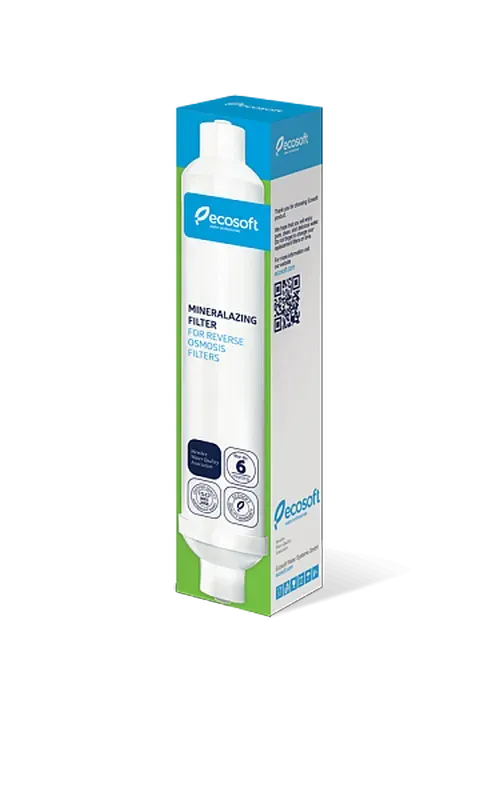 Мінералізатор Ecosoft являє собою циліндричний корпус, всередині якого знаходиться фільтруюча суміш - кальцит і активоване вугілля з шкаралупи кокосового горіха. Під час роботи фільтра зворотного осмосу вода проходить через фільтруючу суміш, яка збагачує воду мінералами і нейтралізує сторонні присмаки і запахи. Зазвичай встановлюється шостим ступенем в фільтрах зворотного осмосу.