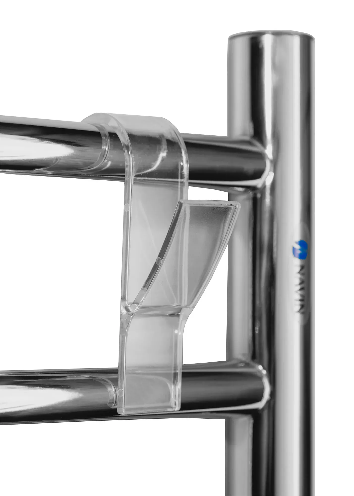 Практичний і дуже зручний гачок для стандартних сушарок для рушників, зроблений із міцного, прозорого пластику. Цей фірмовий аксесуар пасуватиме як рушникосушкам виробництва NAVIN, так і більшості рушникосушарок інших виробників.