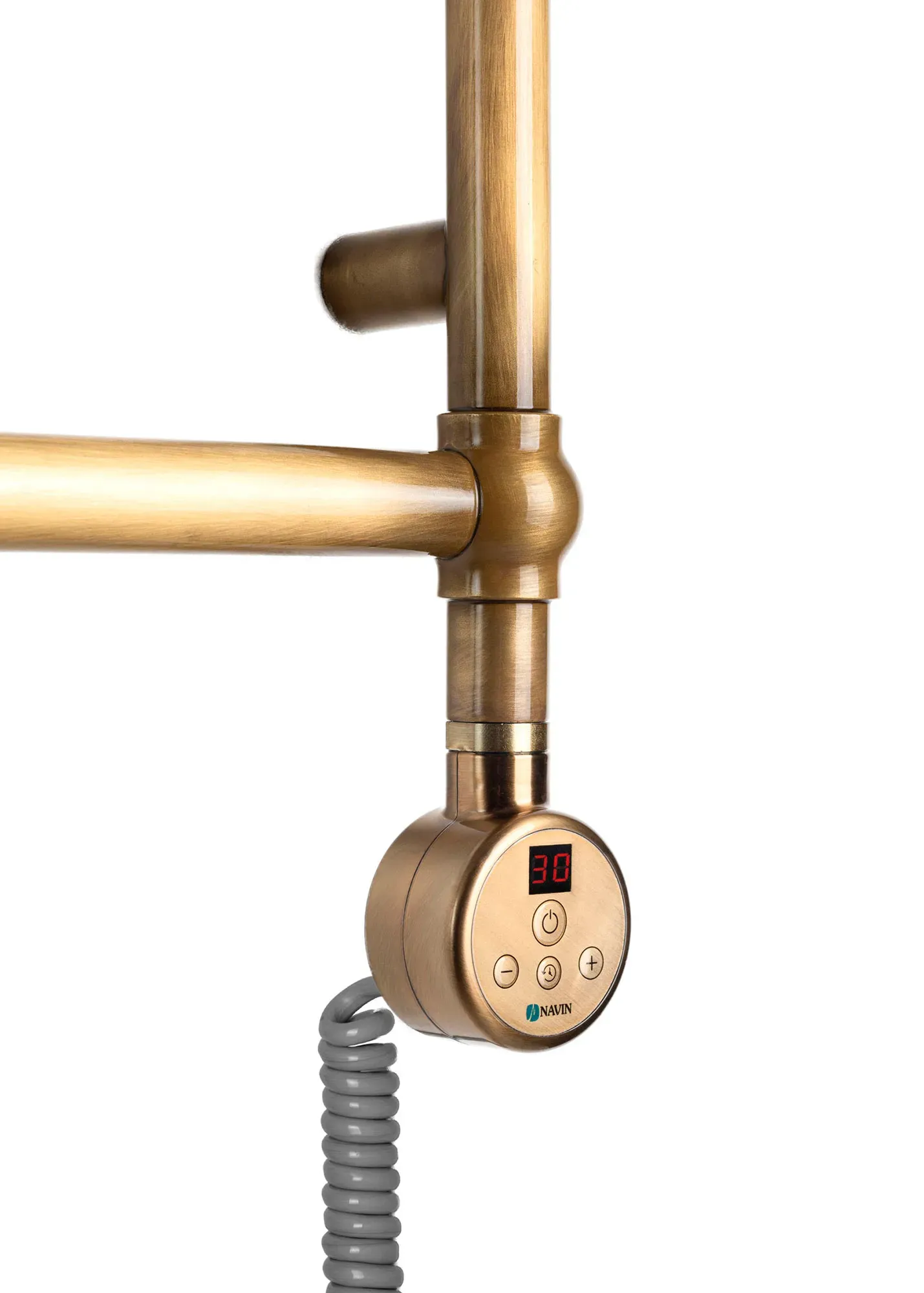 ТЕН NAVIN Digital 300W (покриття - антична бронза) можна встановити як на сушарку для рушників, під'єднану до системи гарячого водопостачання (опалення), так і на автономну сушку чи радіатор. Ця модель нагрівача має номінальну потужність 300 Вт і обладнана терморегулятором із вбудованою функцією таймера, тож ви можете додатково заощаджувати на енерговитратах.