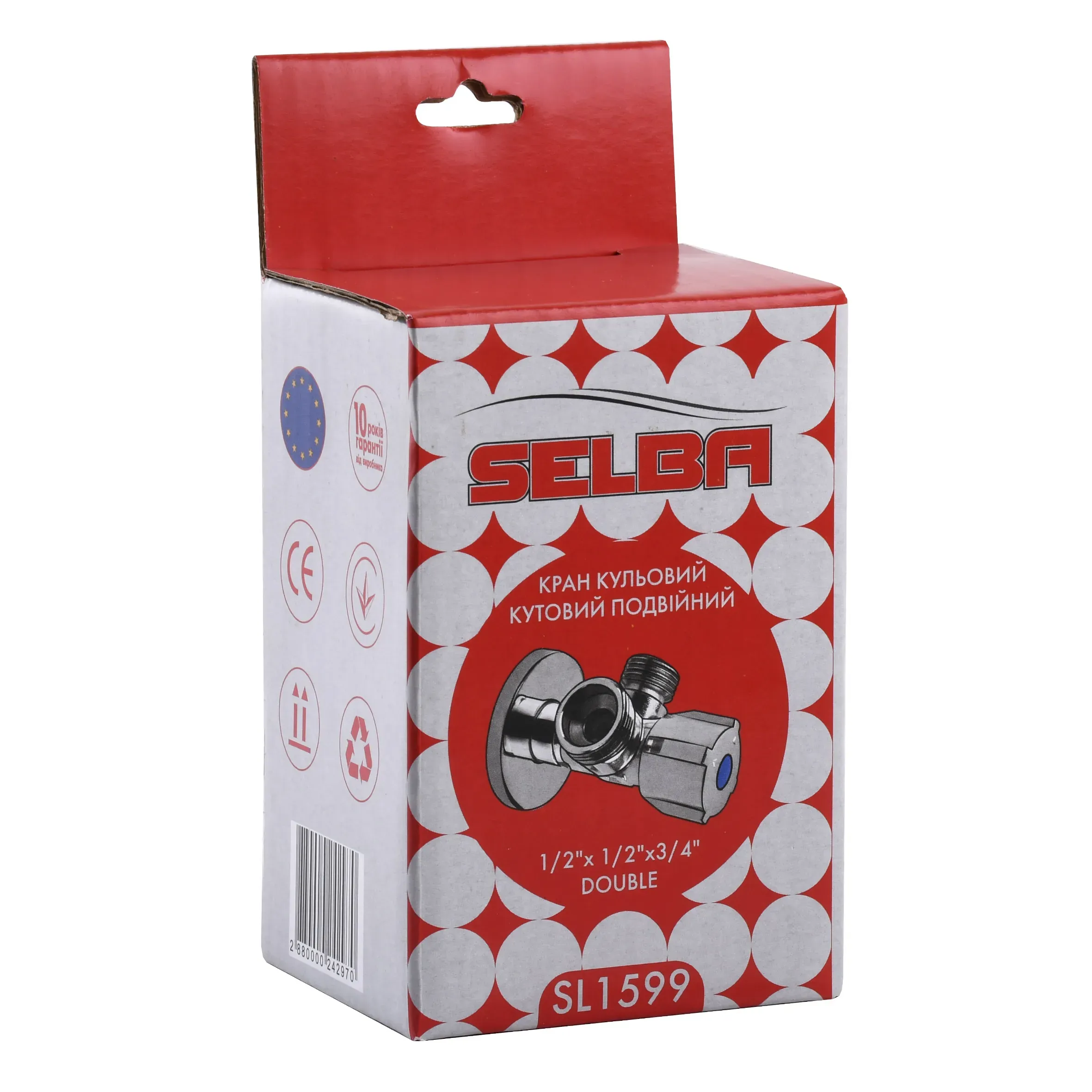 Кран кульовий кутовий подвійний SELBA 1/2″х 1/2″х3/4″ DOUBLE (SL1599)