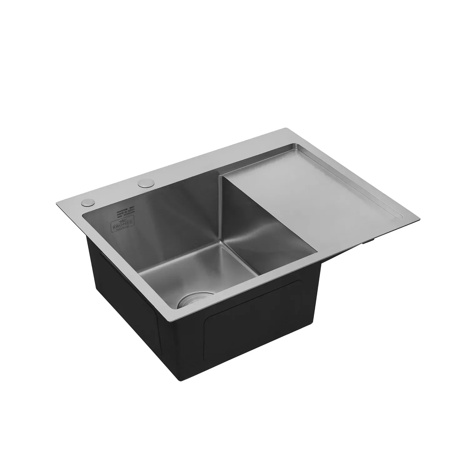 Кухонна мийка Kroner KRP Gebürstet - 6350LHM (3.0/1.0 мм) виготовлена з високоякісної нержавіючої сталі харчової марки, що дозволить виробу прослужити довгі роки. Відмінна якість та дизайн миття дозволять задовольнити найвищі вимоги та створити затишок у вашому будинку! Випуск сифону виготовлений з нержавіючої сталі зі сміттєзбірником у формі цебра і закривається пробкою-кришкою, яку можна використовувати за необхідності набрати води в чашу. Мийка обладнана переливом для відведення води в екстрених випадках. Інтегрований спосіб монтажу дозволяє встановлювати мийку в будь-якому можливому варіанті, класичному врізному - над стільнею, інтегрованому - мийка встановлюється в рівень зі стільнею, і монтаж під стільню.