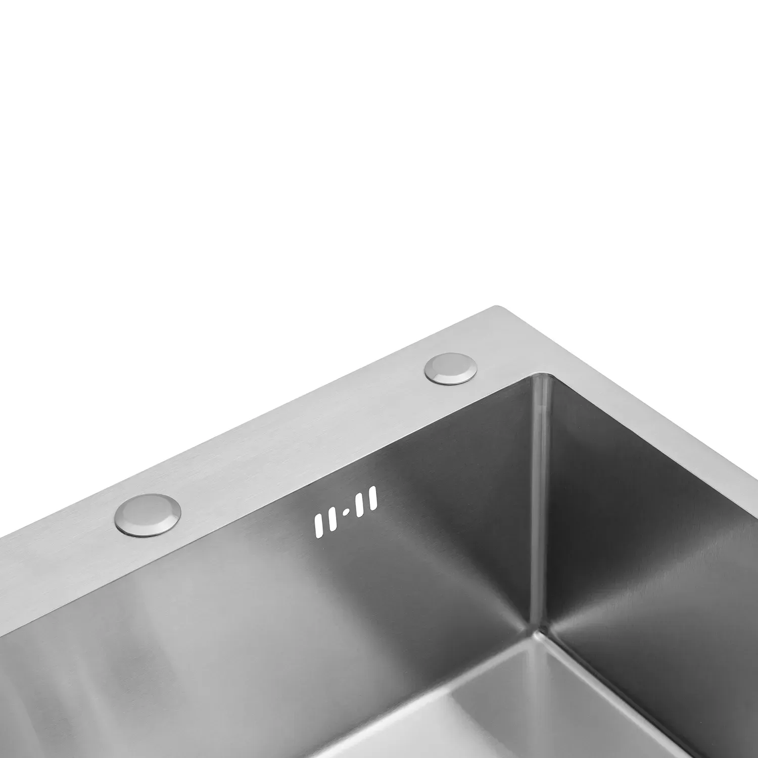 Кухонна мийка Kroner KRP Derby - 5843HM Brush - це ідеальний вибір для вашої кухні, який поєднує в собі стильний дизайн і практичність, допомагаючи вам легко виконувати всі кулінарні завдання і виглядати елегантно при цьому.