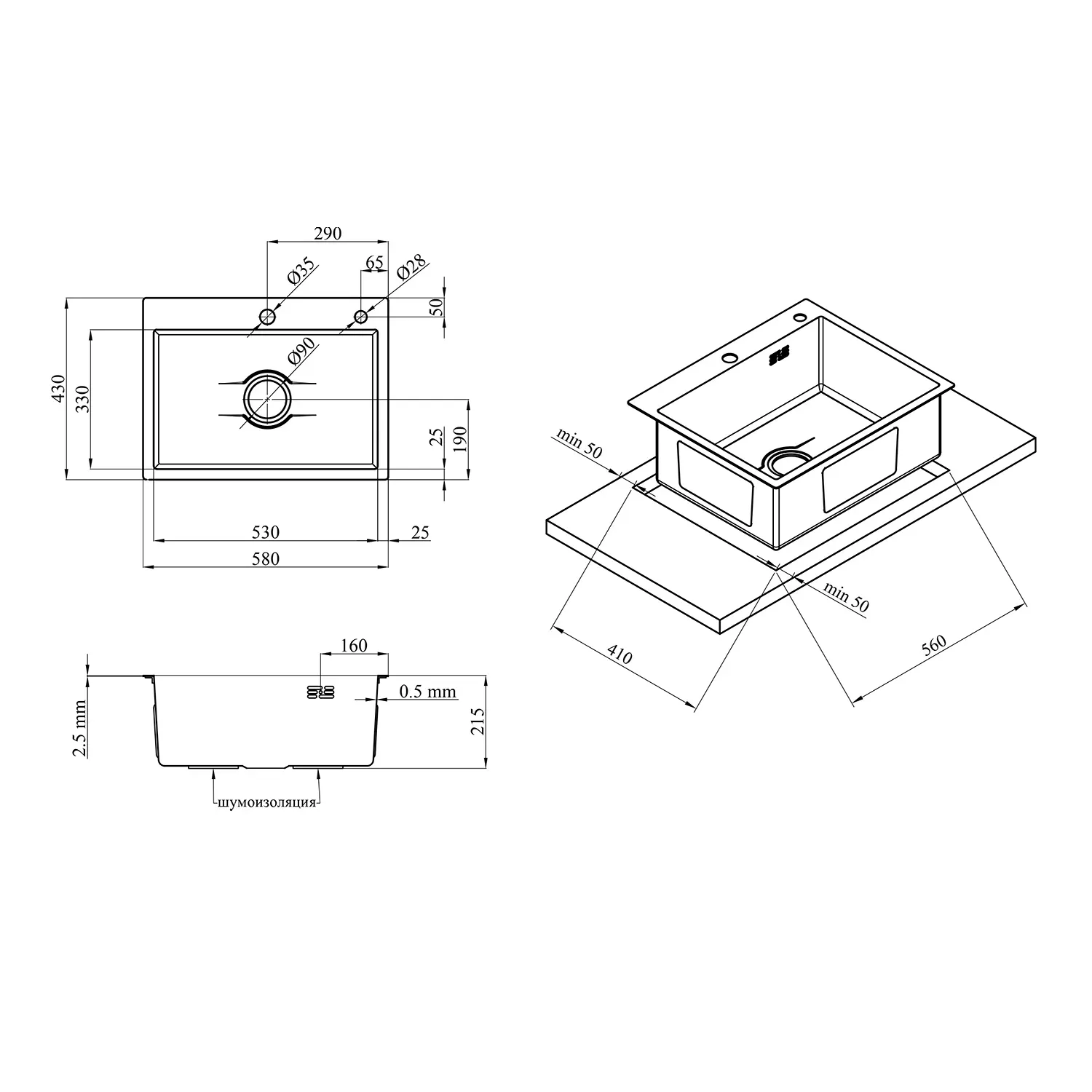 Кухонна мийка Kroner KRP Derby - 5843HM PVD (2,5/0,5 мм) - це стильне і функціональне рішення для вашої кухні. Маючи прямокутну форму з розмірами 580 мм в ширину і 430 мм в глибину, ця мийка стане відмінним доповненням до будь-якої кухні. Вона має висоту 215 мм і виготовлена із нержавіючої сталі, що робить її міцною і довговічною. Ця мийка має інтегрований спосіб монтажу і пропонує три варіанти установки: рівень із стільницею, над стільницею (подібно до врізних мийок) і під нею. Це надає вам можливість вибору оптимального розташування для вашої кухні. Стальний колір мийки та поверхня PVD додають їй елегантний вигляд і роблять її сучасною. Мийка обладнана переливом і сифоном для зручного користування. В комплект входять сама мийка, сифон, злив-перелив та кошиковий вентиль, що робить встановлення і використання цієї мийки легкими і зручними.