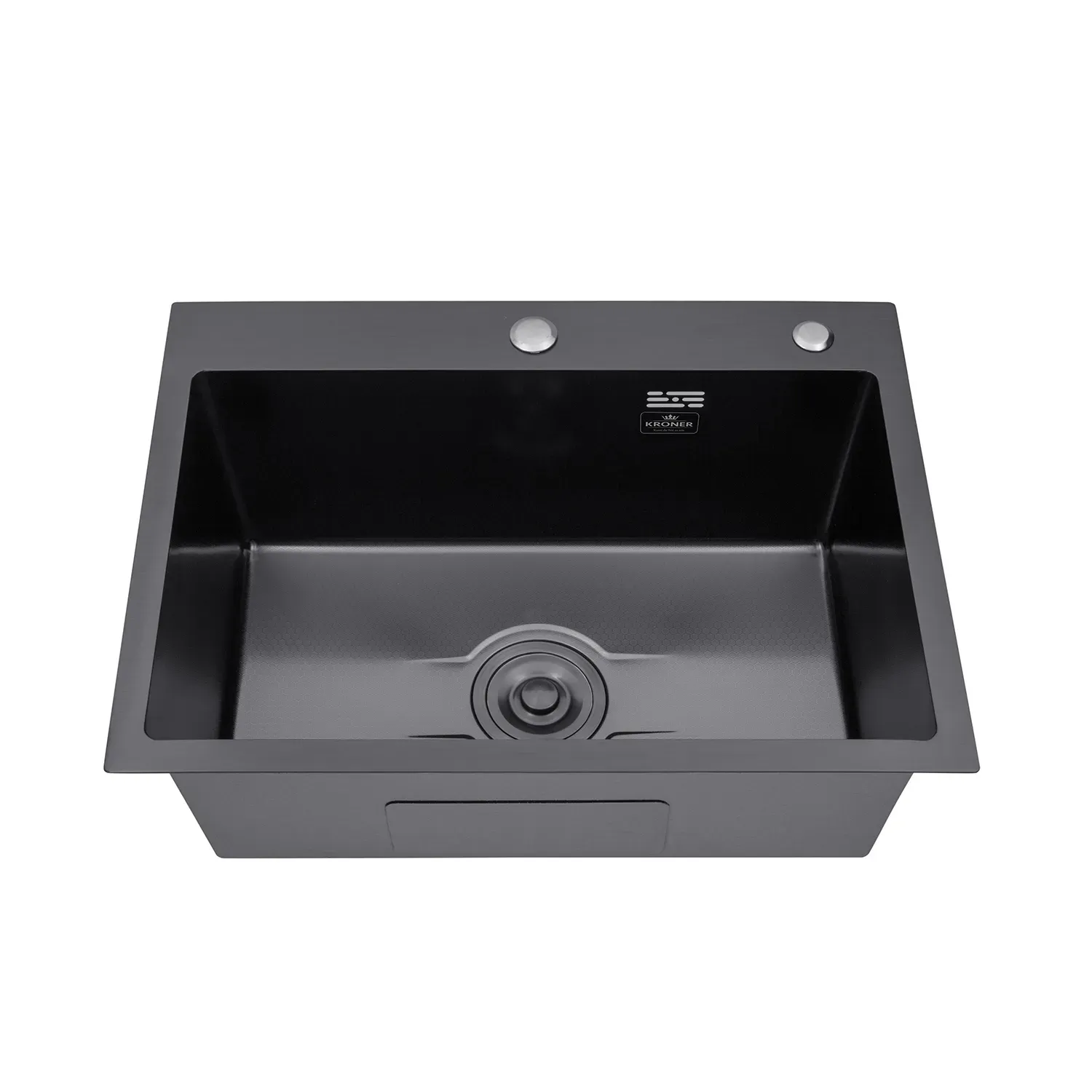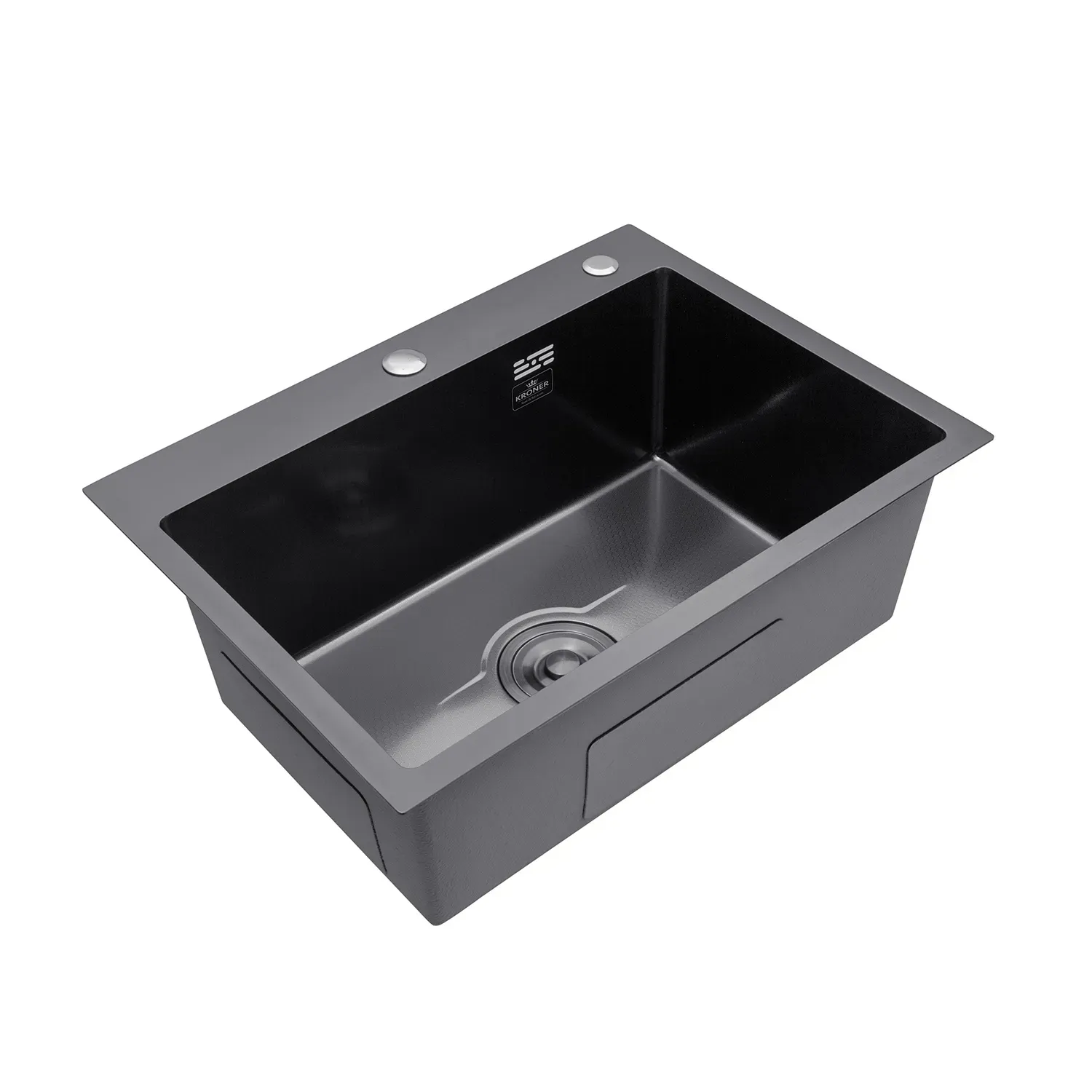 Кухонна мийка Kroner KRP Derby - 5843HM PVD - це ідеальний вибір для вашої кухні, який поєднує в собі стильний дизайн і практичність, допомагаючи вам легко виконувати всі кулінарні завдання і виглядати елегантно при цьому.