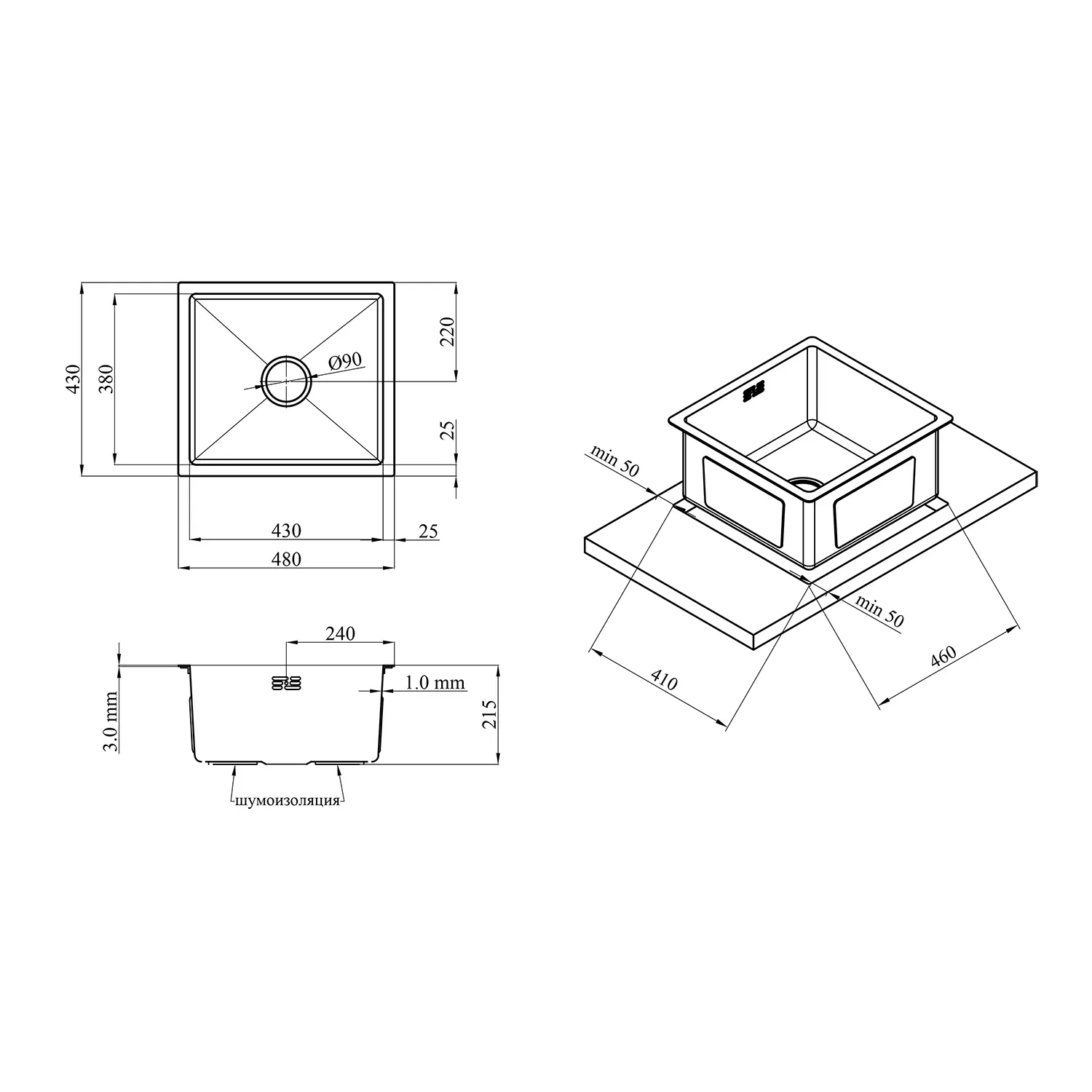 Кухонна мийка kroner krp schwarze - 4843hm pvd (3.0/1.0 мм)