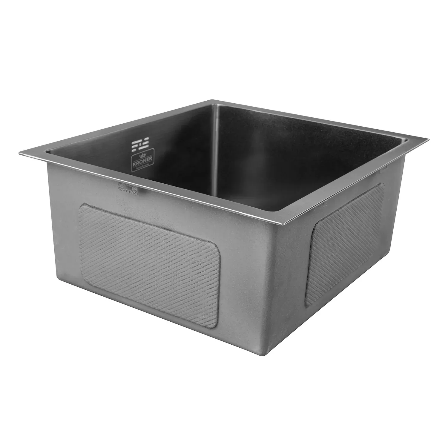 Кухонна мийка Kroner KRP Schwarze - 4843HM PVD (3.0/1.0 мм) - ідеальне рішення для сучасної кухні. Завдяки своїй прямокутній формі та стильному дизайну вона впишеться в будь-який інтер'єр. Інтегрований спосіб монтажу дозволяє безпроблемно встановити мийку. Виготовлена з високоякісної нержавіючої сталі. Практичне доповнення - вбудований отвір для дозатора миючого засобу. Функціональна, надійна та естетично приваблива - мийка від Kroner стане незамінним помічником у приготуваннях та прикрасою вашої кухні.