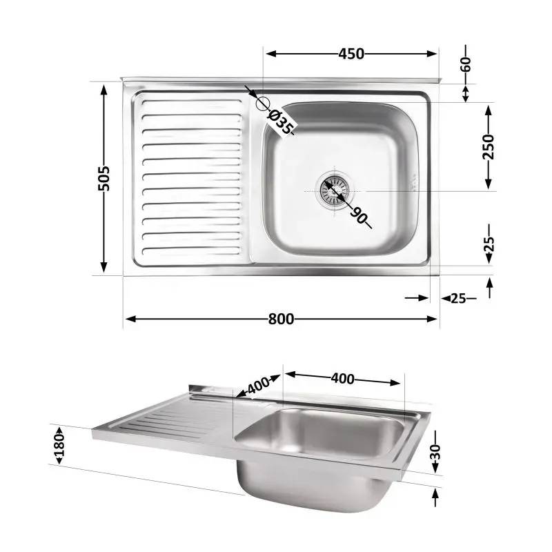 Кухонна мийка Lidz 5080-R 0,8 мм Satin (LIDZ5080RSAT8) виготовлена з нержавіючої сталі харчової марки, тому виріб прослужить довгі роки. Також варто відзначити винятковий дизайн, який прикрасить будь-яку кухню. Відмінна якість та дизайн мийки задовольнять найвибагливі побажання! Мийка виконана з робочою чашею, крилом для сушіння посуду і розморожування продуктів, отвором для змішувача. Монтується накладним способом в отвір в стільниці.