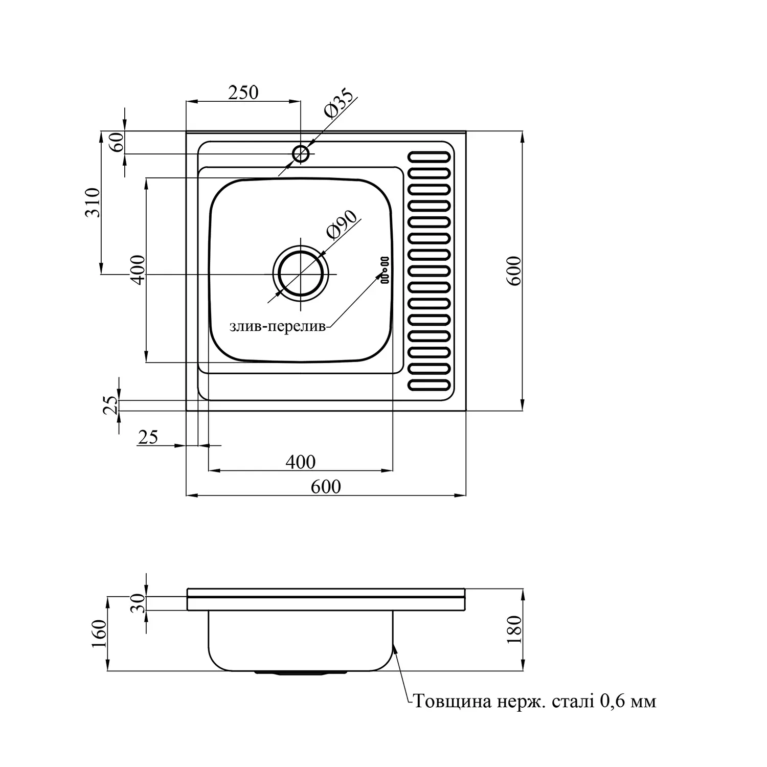 Кухонна мийка накладна kroner krp dekor - 6060l (0.6 мм)