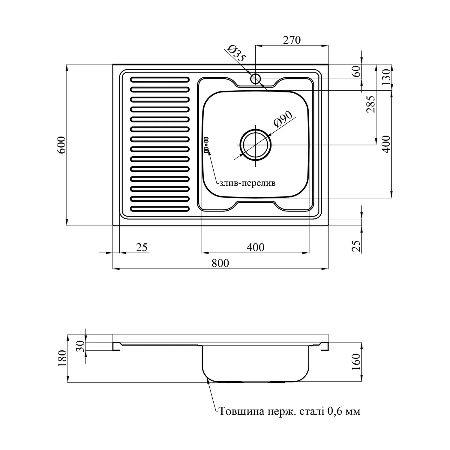 Кухонна мийка накладна kroner krp dekor - 6080r (0.6 мм)