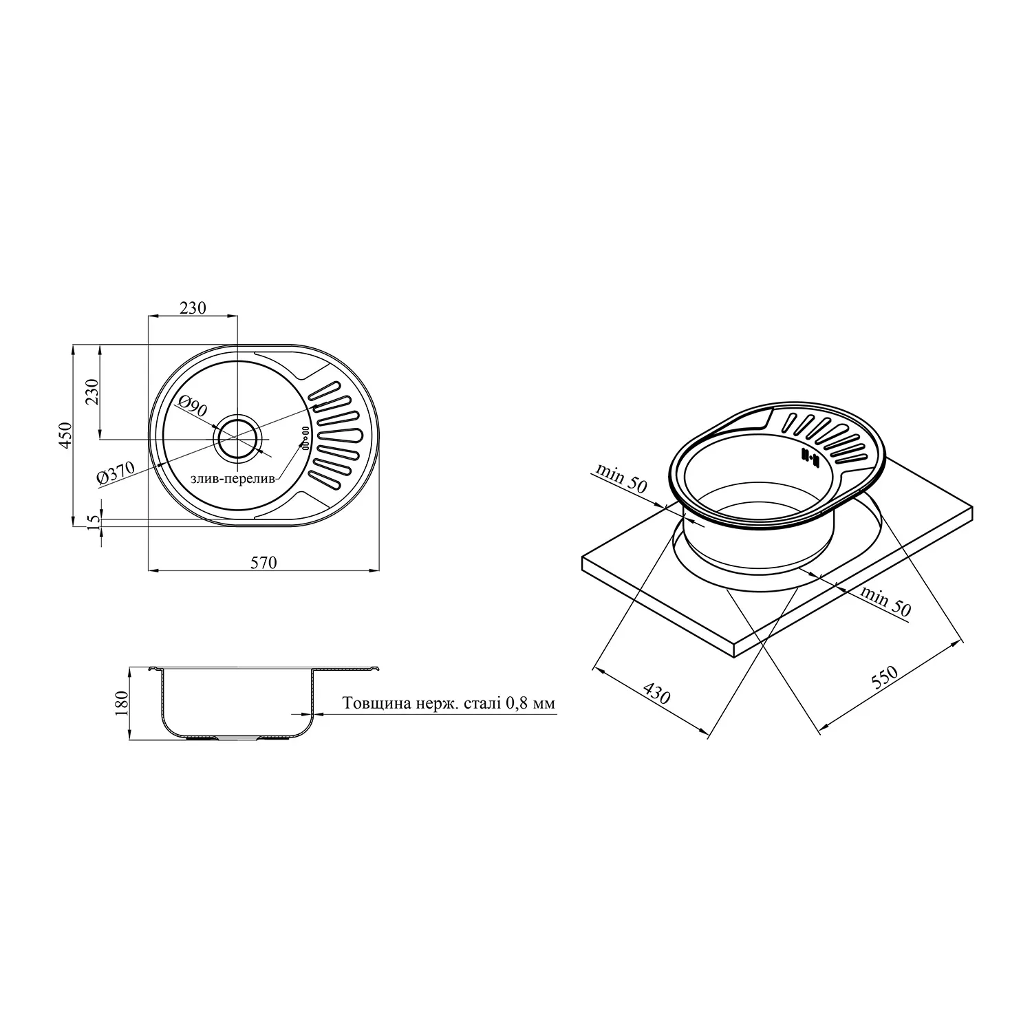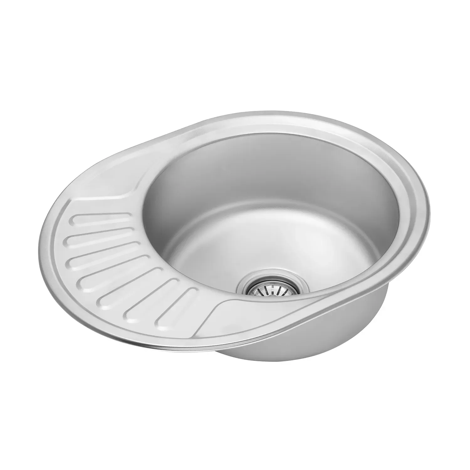Кухонна мийка Kroner KRP Dekor - 5745 (0,8 мм) - ідеальне рішення для сучасної кухні. Завдяки своїй овальній формі і стильному дизайну вона впишеться в будь-який інтер'єр. Врізний спосіб монтажу дозволяє легко і безпроблемно встановити мийку. Виготовлена з високоякісної нержавіючої сталі, що забезпечує довгий термін служби і легку очистку. Функціональна, надійна та естетично приваблива - мийка від Kroner стане незамінним помічником у приготуваннях та прикрасою вашої кухні.