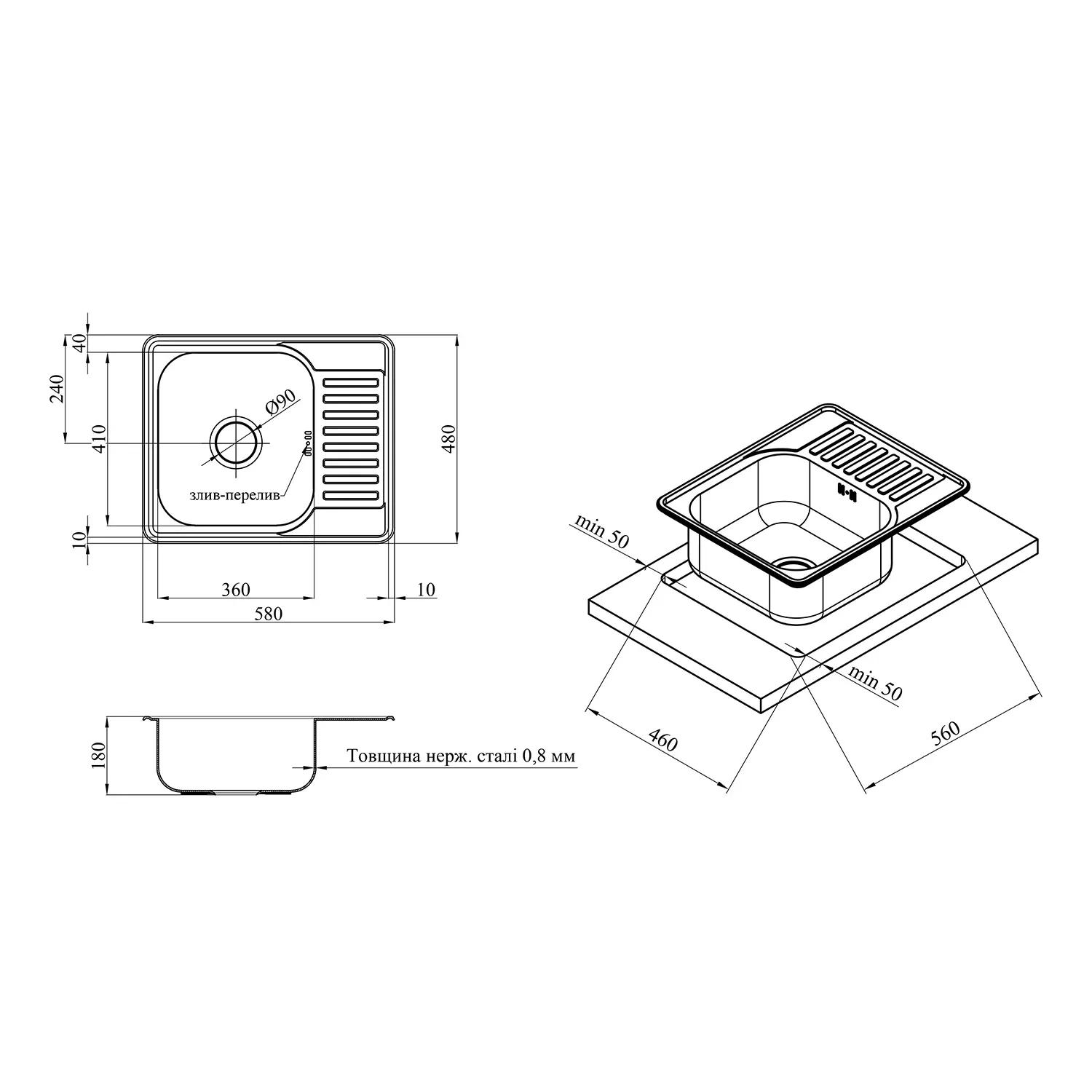 Кухонна мийка kroner krp dekor - 5848 (0.8 мм)