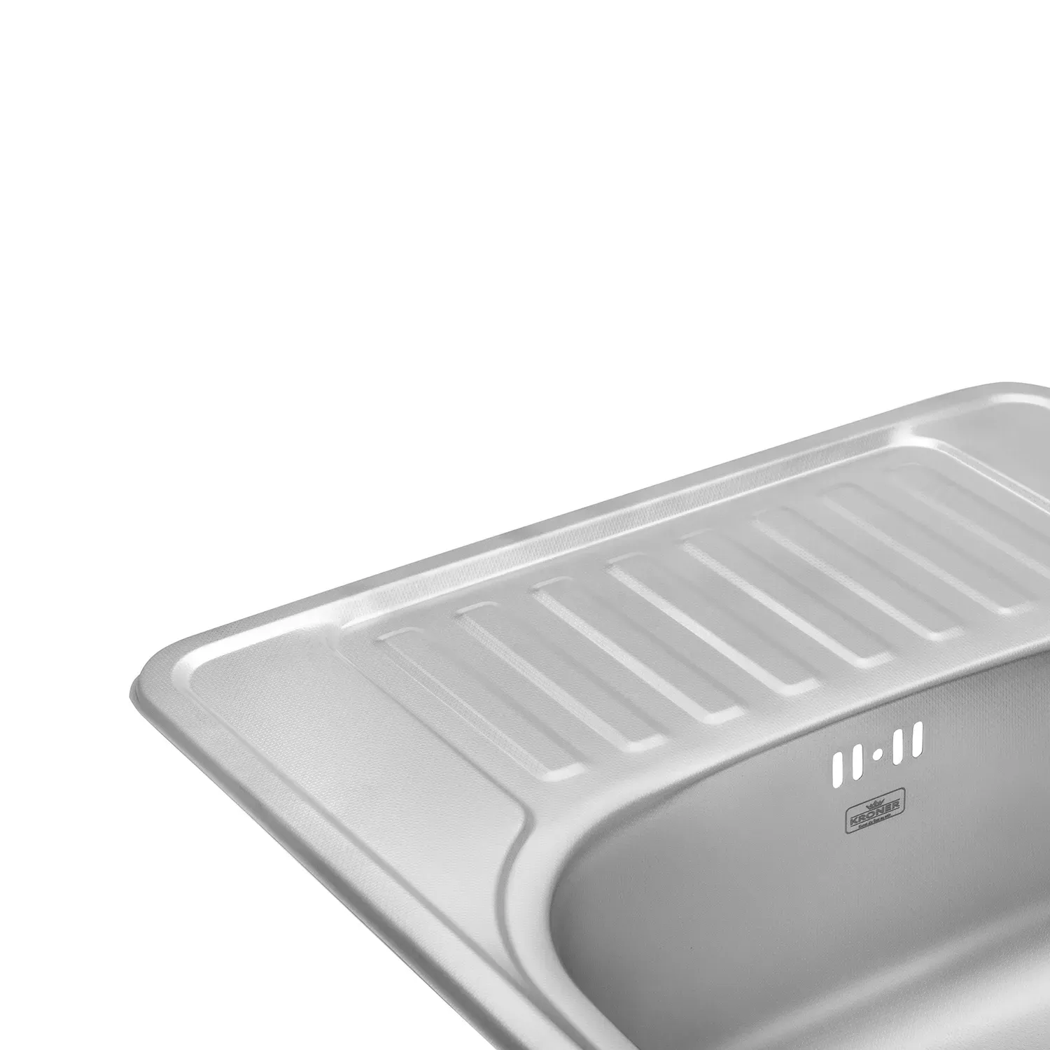 Кухонна мийка Kroner KRP Dekor - 5848 (0,8 мм) - ідеальне рішення для сучасної кухні. Завдяки своїй прямокутній формі та стильному дизайну вона впишеться в будь-який інтер'єр. Врізний спосіб монтажу дозволяє легко та безпроблемно встановити мийку. Виготовлена з високоякісної нержавіючої сталі, що забезпечує довгий термін служби та легке очищення. Функціональна, надійна та естетично приваблива - мийка від Kroner стане незамінним помічником у приготуваннях та прикрасою вашої кухні.