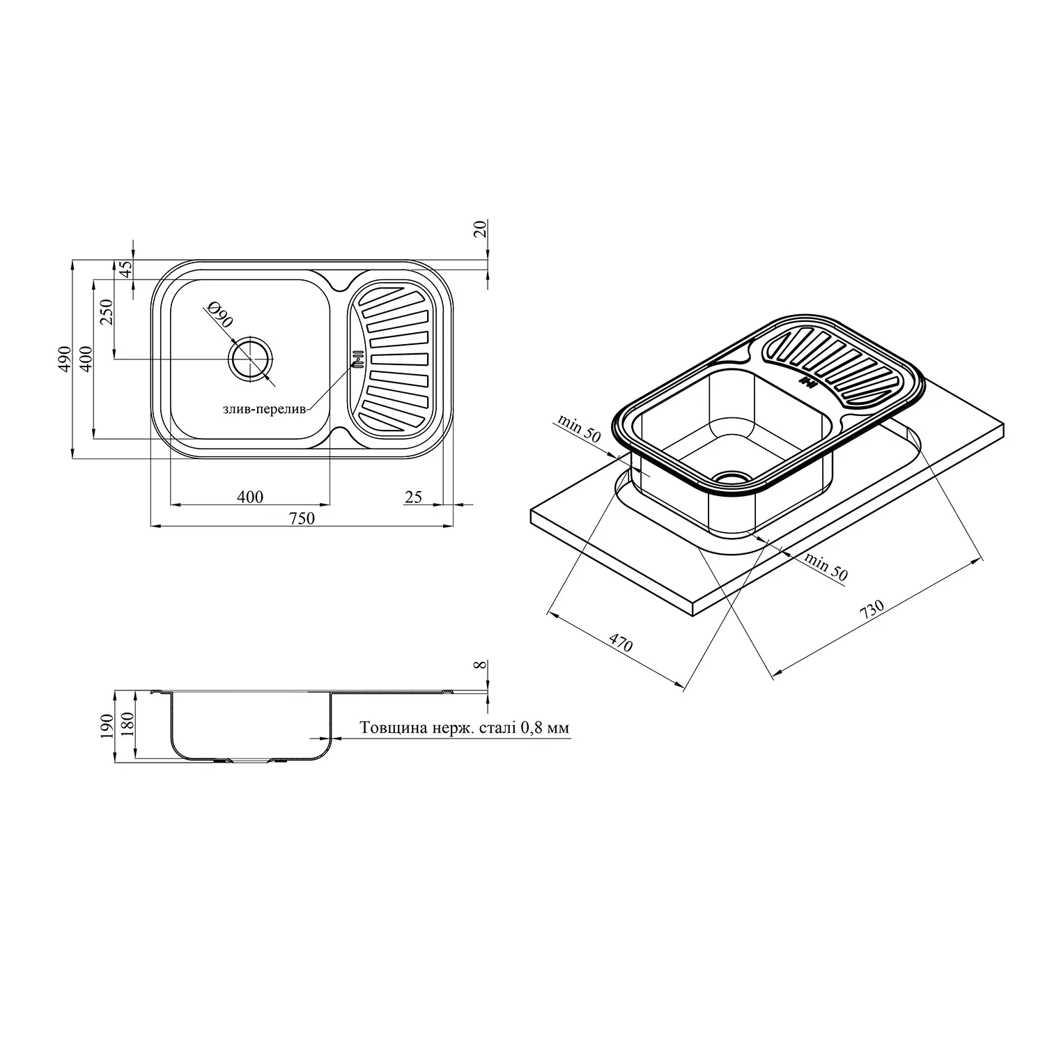 Кухонна мийка kroner krp dekor - 7549 (0.8 мм)