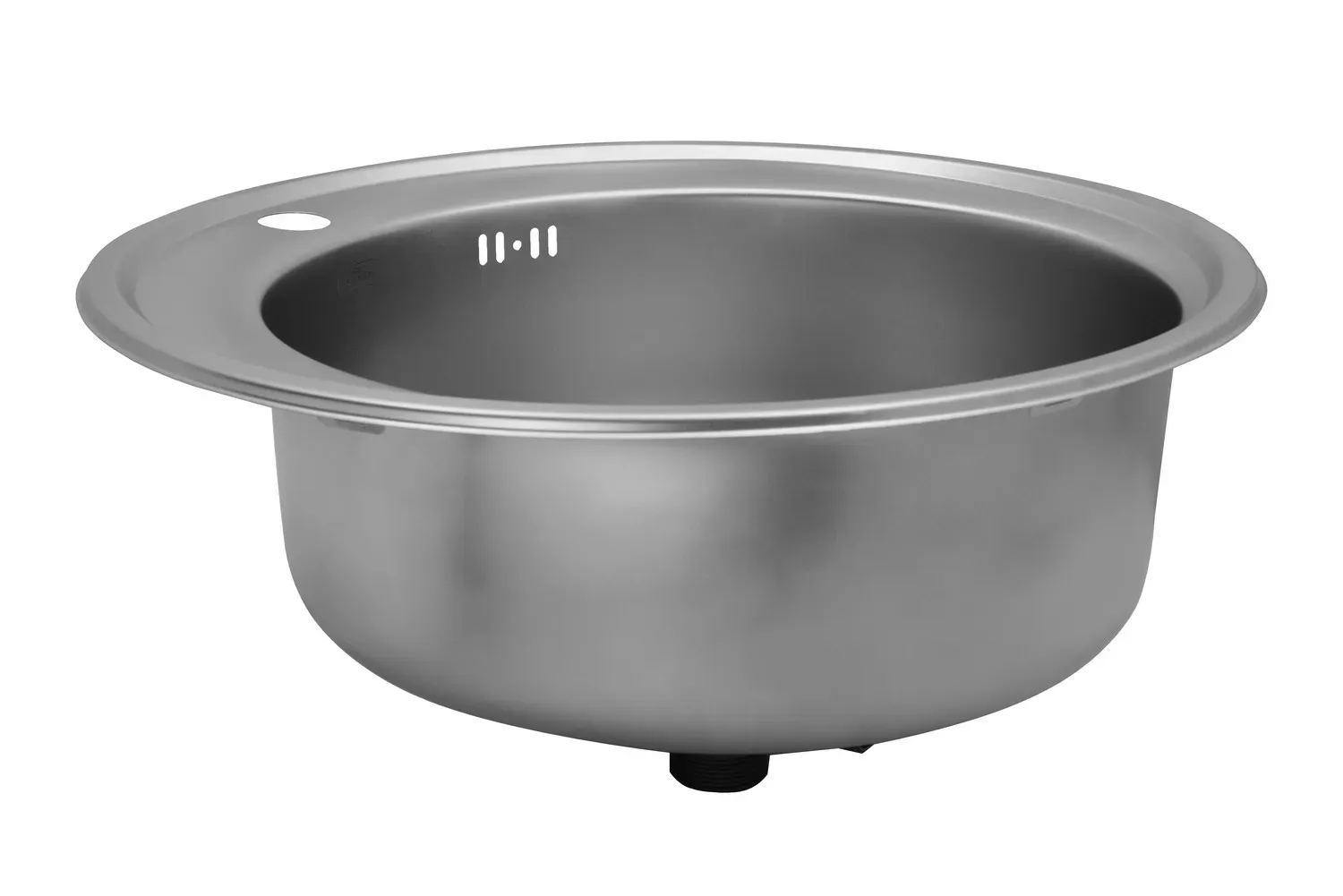 Кухонна мийка Kroner KRP Satin - 510 (0,8 мм) - ідеальне рішення для сучасної кухні. Завдяки своїй круглій формі і стильному дизайну вона впишеться в будь-який інтер'єр. Врізний спосіб монтажу дозволяє безпроблемно встановити мийку. Виготовлена з високоякісної нержавіючої сталі, що забезпечує довгий термін служби і легку очистку. Функціональна, надійна та естетично приваблива - мийка від Kroner стане незамінним помічником у приготуваннях та прикрасою вашої кухні.