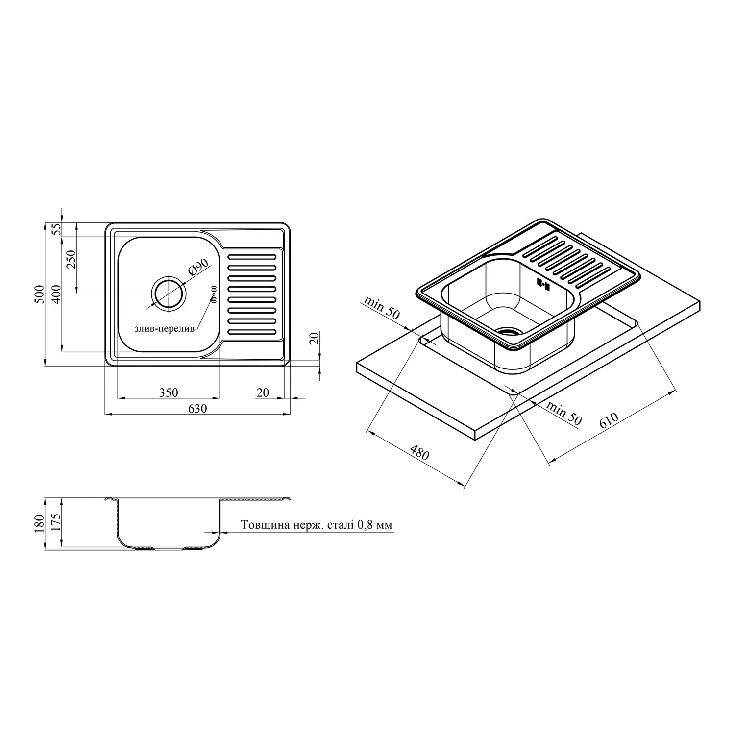 Кухонна мийка kroner krp satin - 6350 (0.8 мм)