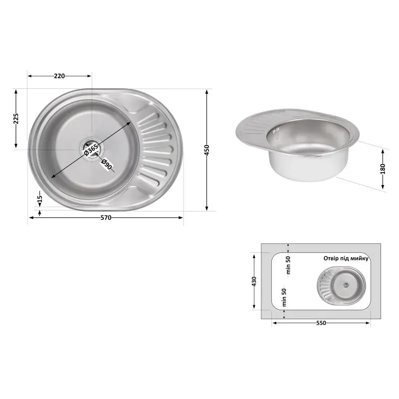Кухонна мийка lidz 5745 0,8 мм satin (lidz5745sat08)
