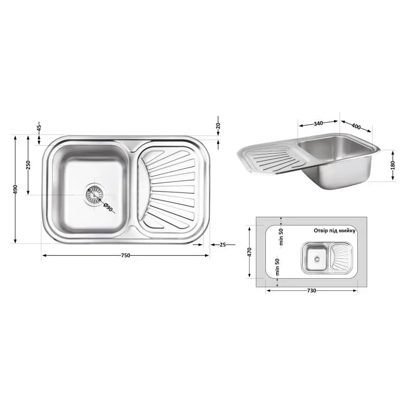 Кухонна мийка lidz 7549 0,8 мм micro decor (lidz7549micdec)