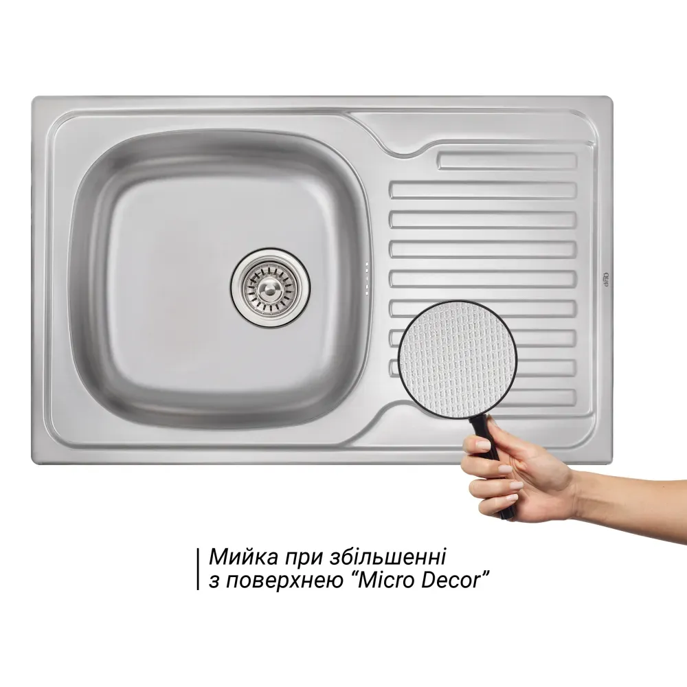 Кухонна мийка Qtap 7850 Micro Decor (QT7850MICDEC08) виготовлена з високоякісної нержавіючої сталі харчової марки, тому виріб прослужить довгі роки. Також варто відзначити винятковий дизайн, який прикрасить будь-яку кухню. Відмінна якість та дизайн мийки задовольнять найвибагливі побажання й створять затишок у вашому домі! Мийка виконана з робочою чашею, ребристим крилом для сушіння посуду та розморожування продуктів. Монтується урізним способом в отвір в стільниці. Поверхня - ребриста.