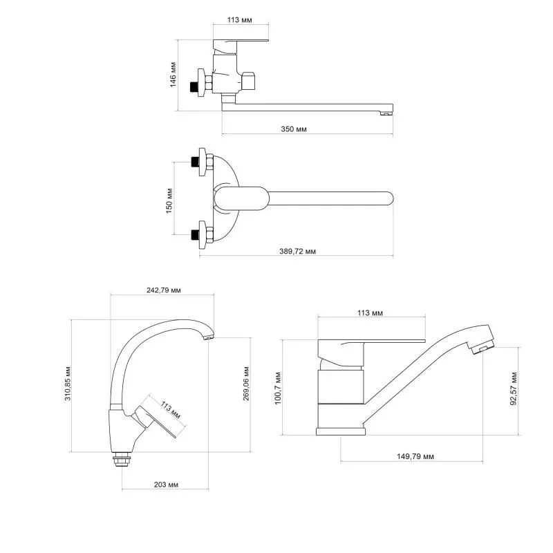 Набір змішувачів Lidz 3 в 1 Tani (002M+0052+007F) складається з двох змішувачів для кухні та змішувача для ванни з поворотним виливом (з душовим гарнітуром), виконаний в універсальному кольорі – хром. Вироби набору підходять за стилем, ідеально доповнюють один одного, чудово впишуться у будь-який інтер'єр.