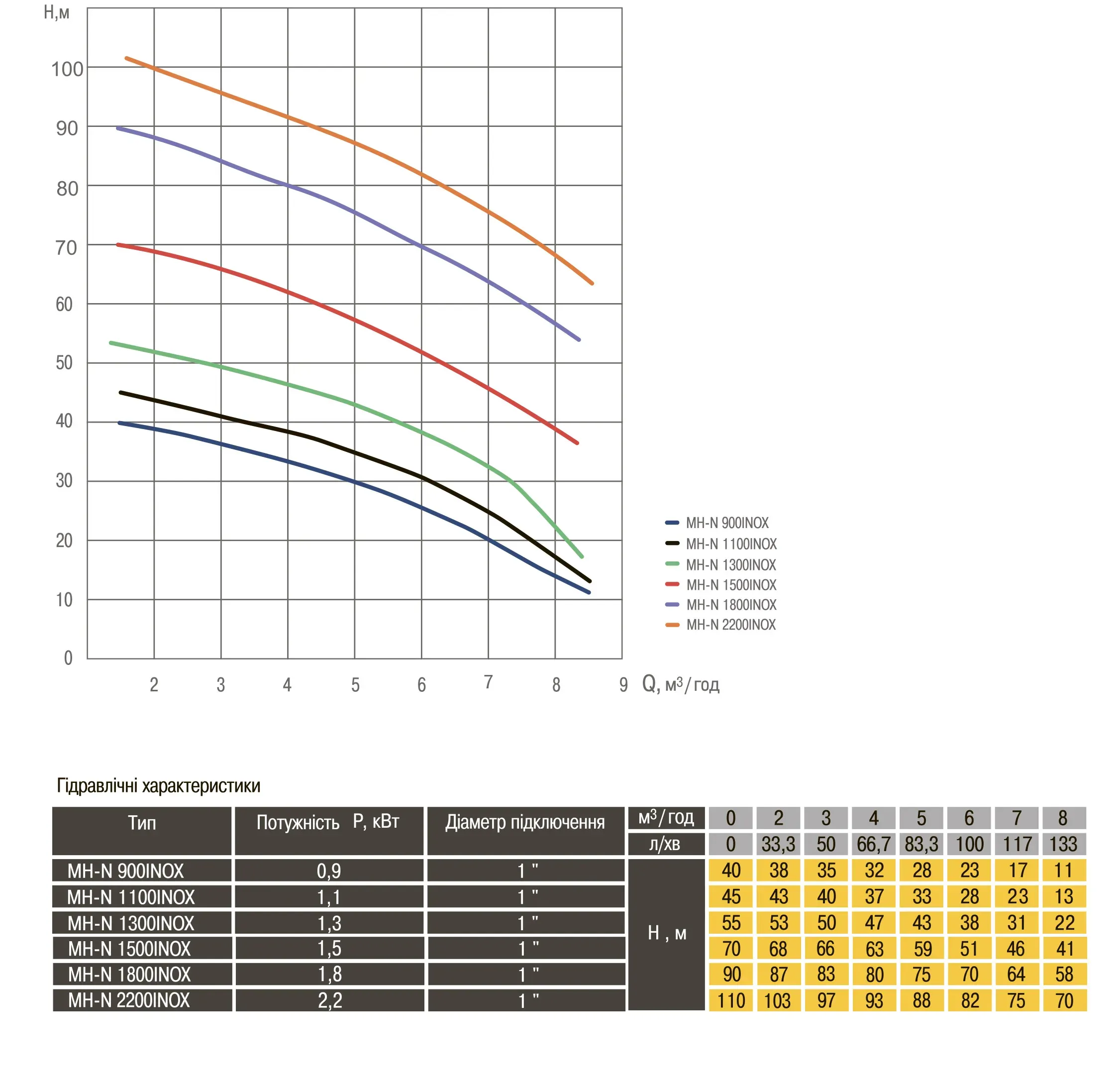 Висота підйому води даної моделі до 7 метрів. Кількість робочих коліс MH-N 2200INOX - 10