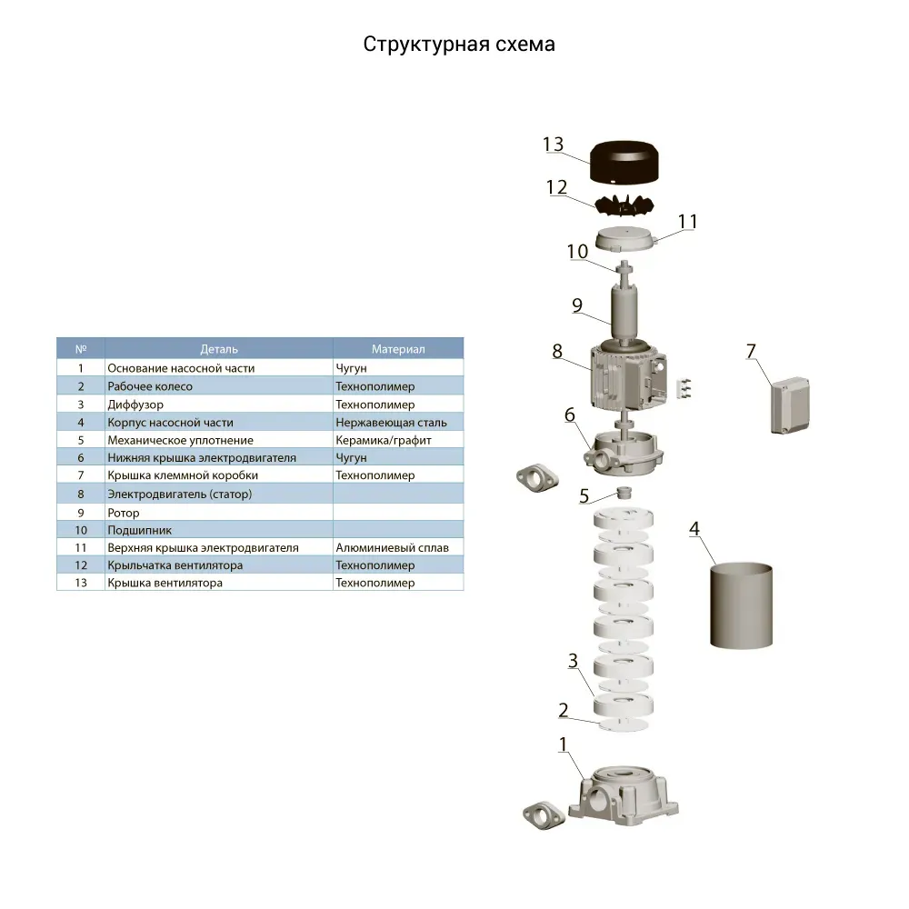 - Корпус: чавун з антикорозійною обробкою/нержавіюча сталь AISI 304;