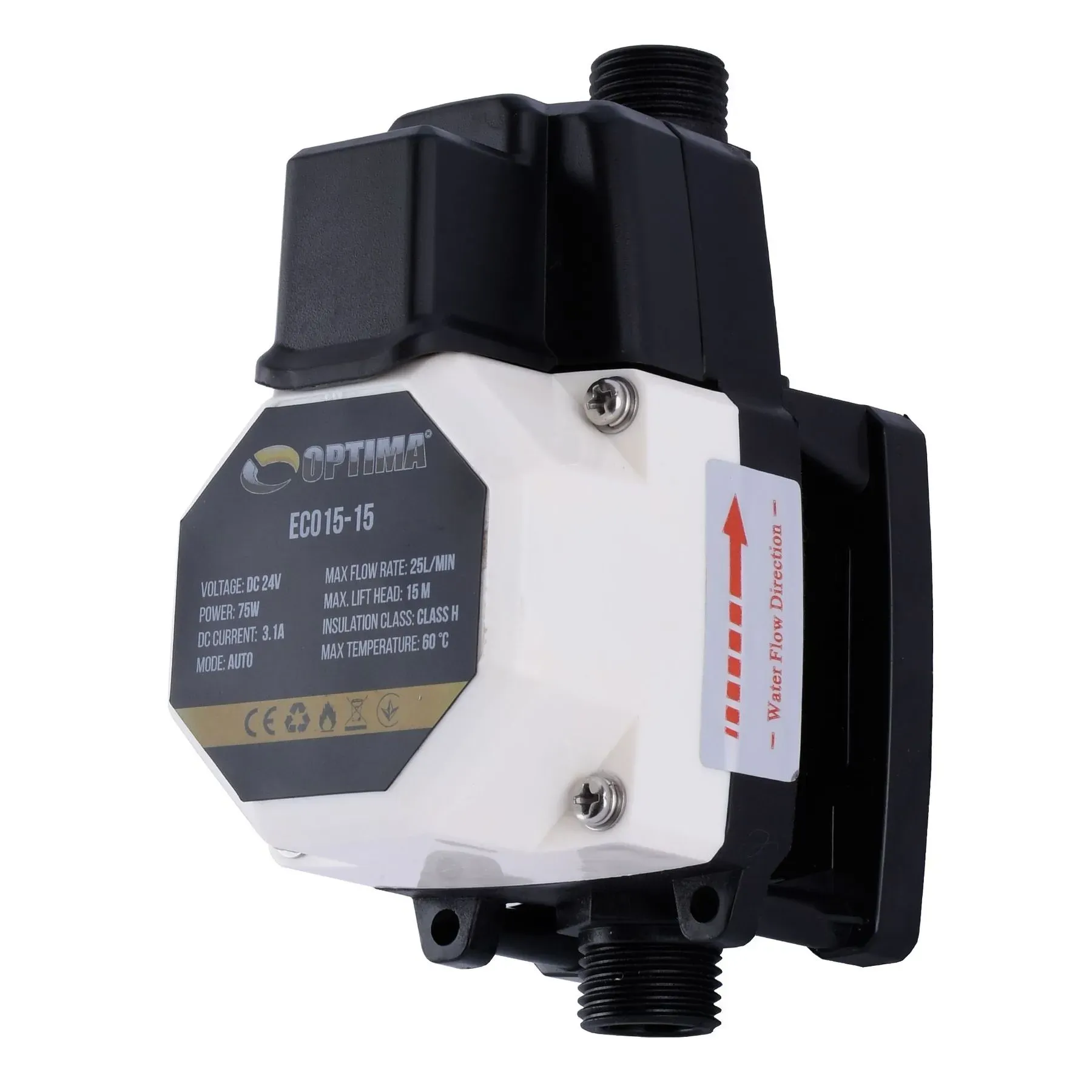 Насос підвищення тиску Optima ECO 15-15 AUTO ( пластиковий корпус, двигун на постійних магнітах ) використовується для підвищення тиску в системах водопостачання індивідуального типу. Допускається перекачування тільки чистої води без хімічних і механічних домішок. Невеликі габарити і вага, конструктивне виконання з патрубками в лінію дозволяють виконувати монтаж насоса безпосередньо на трубопроводі. Насос працює практично безшумно, тому його можна встановлювати в будь-якому місці будинку або квартири.
