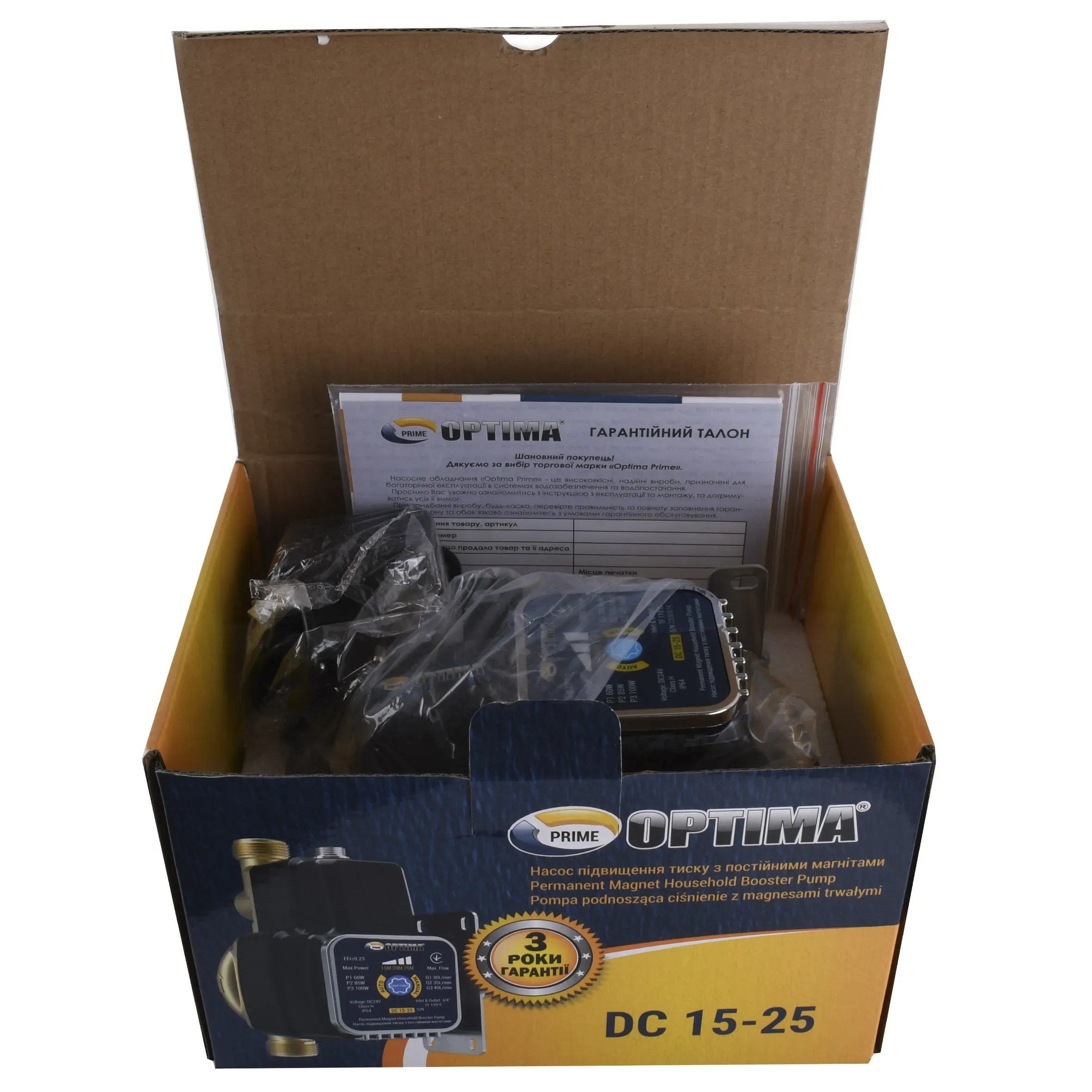 Насос підвищення тиску Optima DC 15-25 AUTO ( пластиковий корпус, двигун на постійних магнітах ) використовується для підвищення тиску в системах водопостачання індивідуального типу. Допускається перекачування тільки чистої води без хімічних і механічних домішок. Невеликі габарити і вага, конструктивне виконання з патрубками в лінію дозволяють виконувати монтаж насоса безпосередньо на трубопроводі. Насос працює практично безшумно, тому його можна встановлювати в будь-якому місці будинку або квартири.
