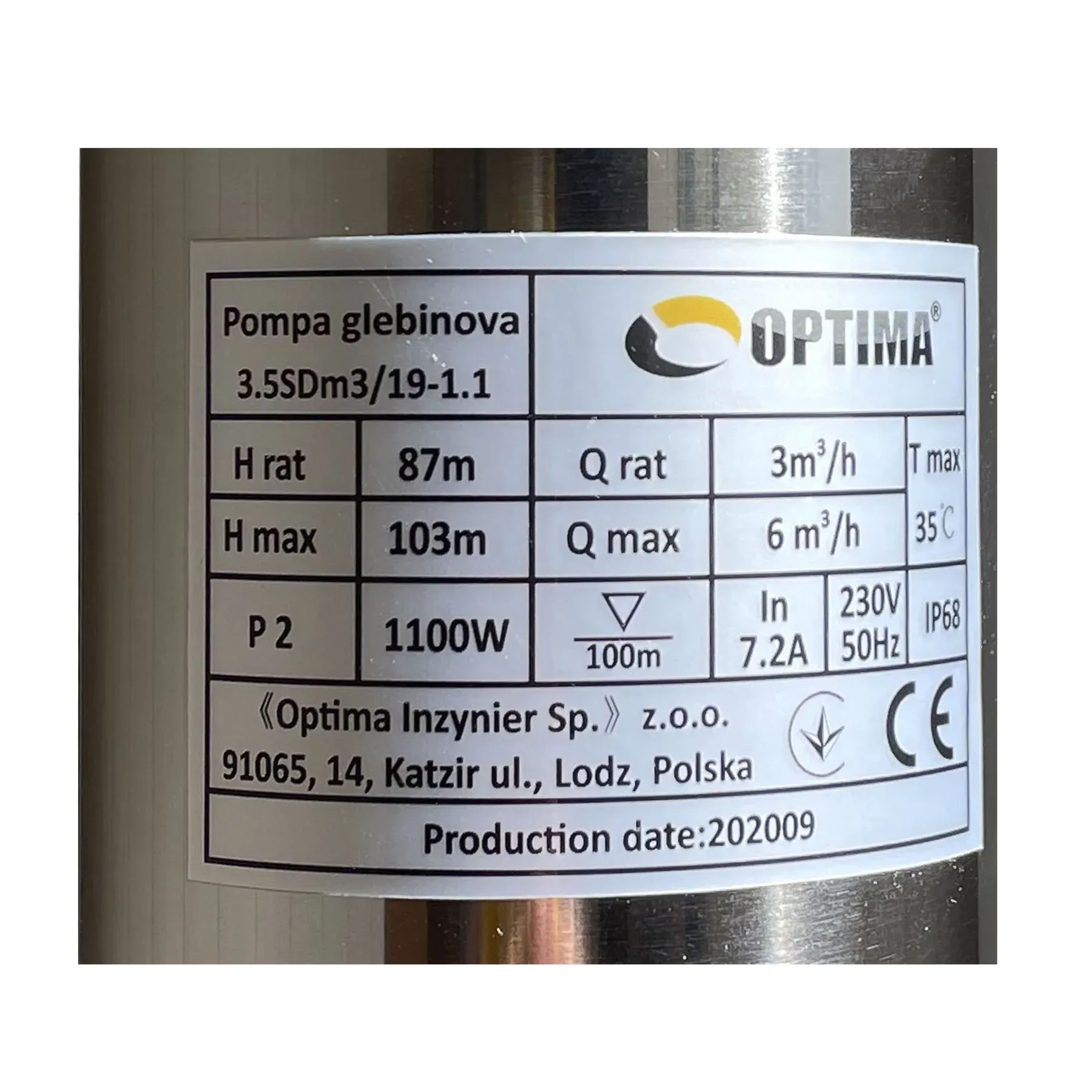 Насос OPTIMA 3.5SDm3 / 19 1.1 кВт 103м складається з двох частин: двигун в нижній частині і насос у верхній частині, жорстко з'єднані між собою зубчастої муфтою міжнародного стандарту Nema і має забір води в середній частині корпусу. Насос относятітся до насосів відцентрового типу і має багатоступеневу конструкцію і «плаваючі» робочі колеса, завдяки яким реалізується підвищена стійкість до піску (до 1500 г / м3).