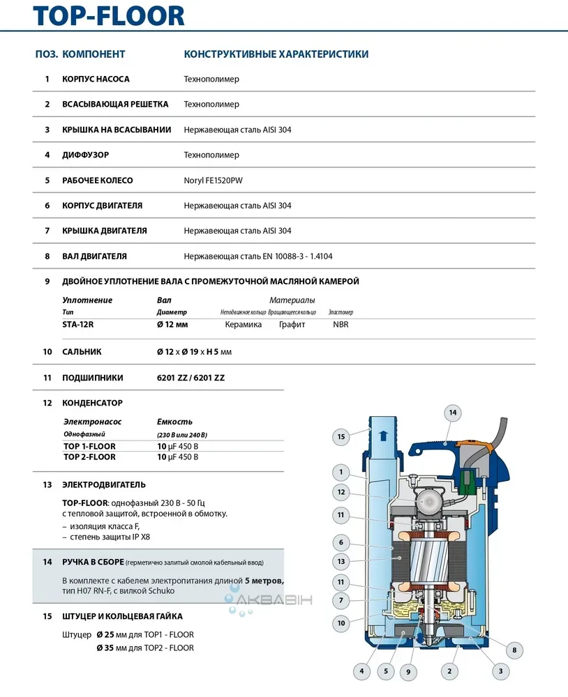 Насоси серії ТОР рекомендуються для підйому чистої води без наявності частинок. Дренажний насос безпечний в експлуатації, завдяки повному охолодженню двигуна і подвійному механічному ущільненню валу. Ці насоси придатні для осушення затоплених приміщень невеликого обсягу, переробки побутових стоків, для осушення невеликих каналізаційних відстійників.