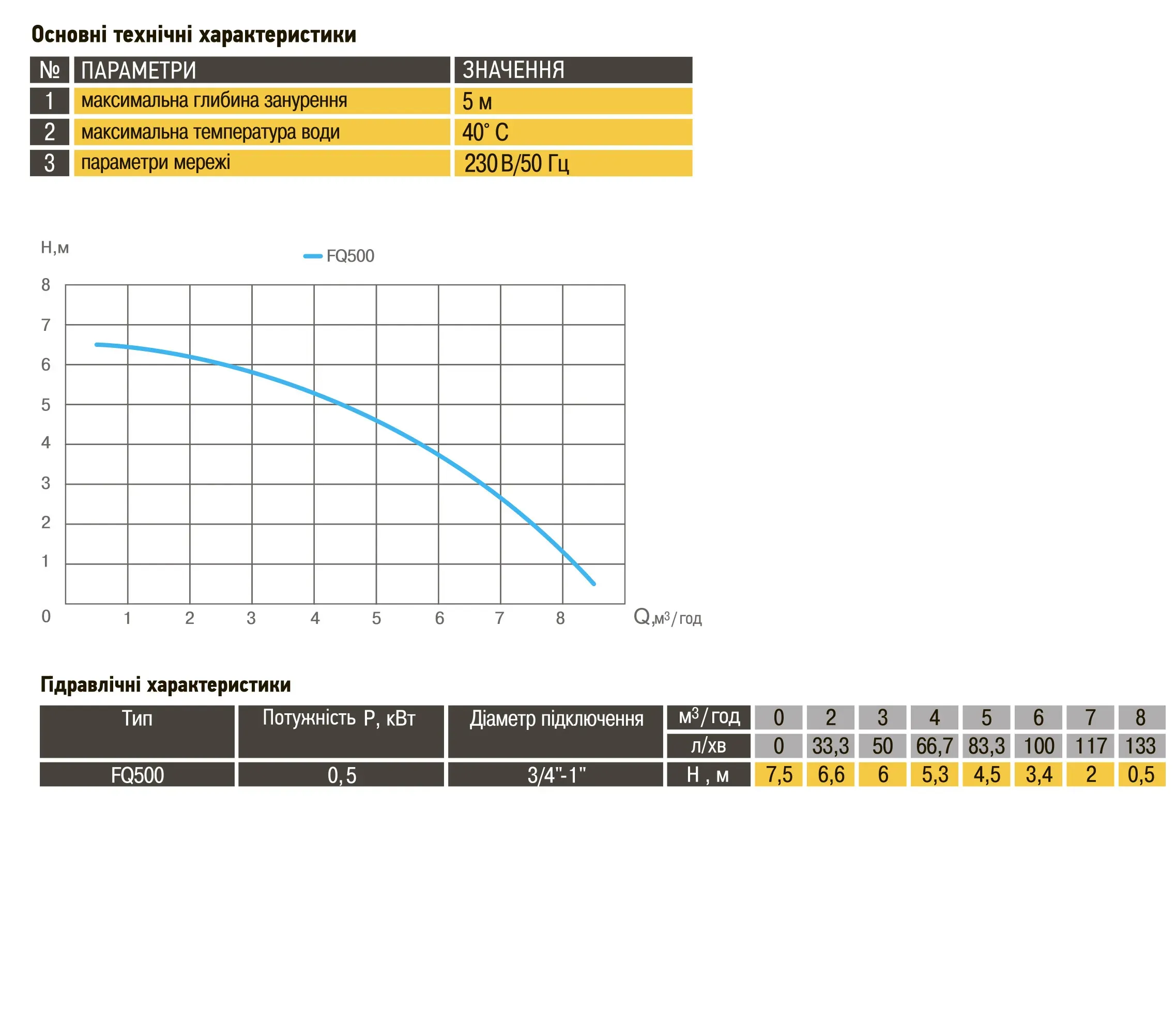 • максимальний напір - 6,5 м;
