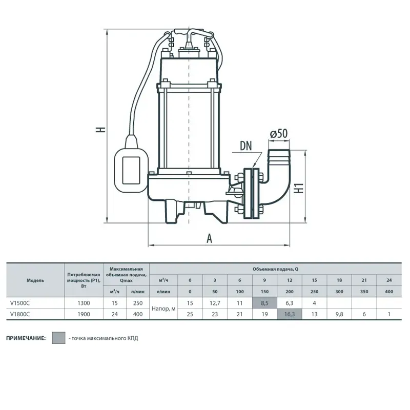 Фекальний насос Sprut V1800С (1,9кВт) призначений для підйому брудних вод і хімічно неагресивних рідин, таких як грунтові і поверхневі води, що містять мул, побутові стоки, в тому числі фекаліями, а також для осушення зливних колодязів, басейнів і підвалів.