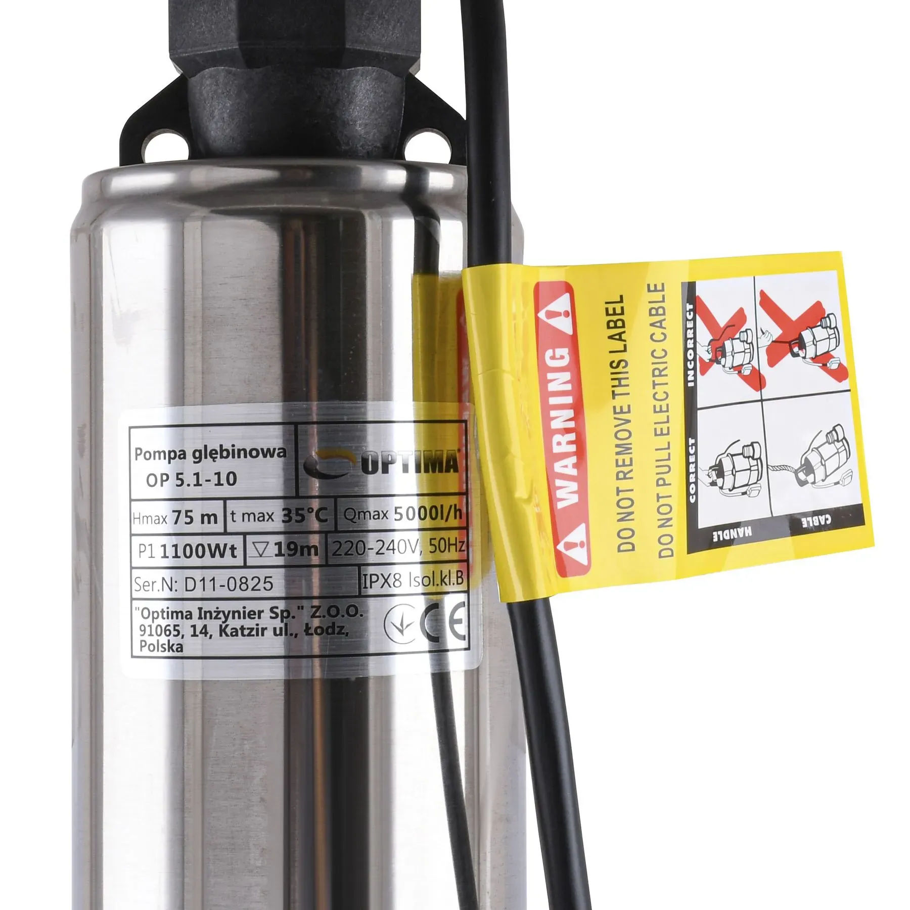 • Довжина поліпропіленового шнура для опускання та піднімання насоса - 25 м