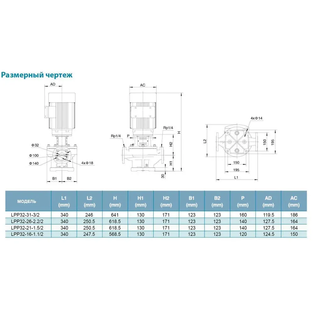 Насос промисловий LEO 3.0 LPP32-31-3/2 7714063 3 кВт (3 фази)