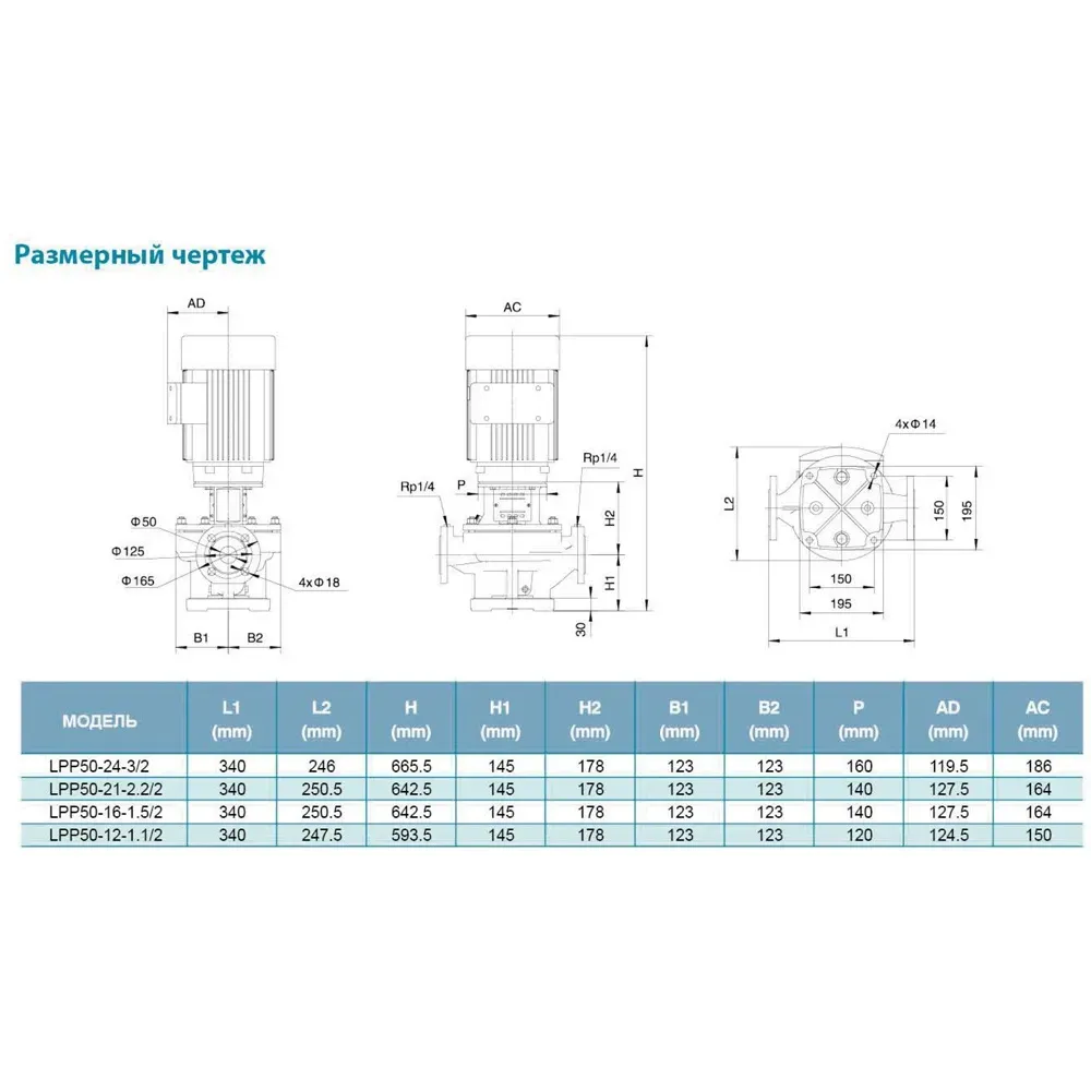 Насос промисловий LEO 3.0 LPP50-28-4/2 7714283 4 кВт (3 фази)