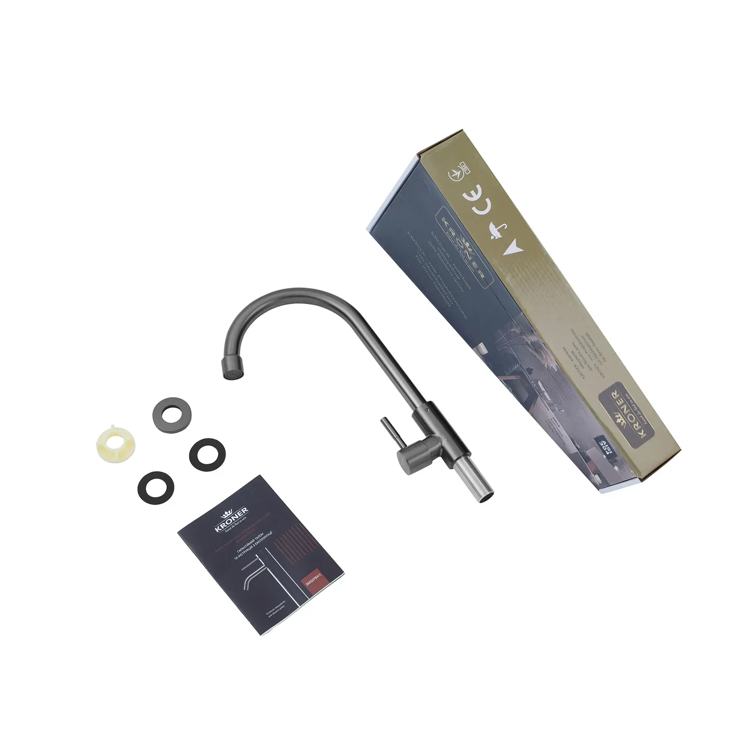 Цей кран від Kroner є практичним і естетично приємним вибором для вашої кухні, де функціональність і стиль поєднуються в ідеальному балансі.