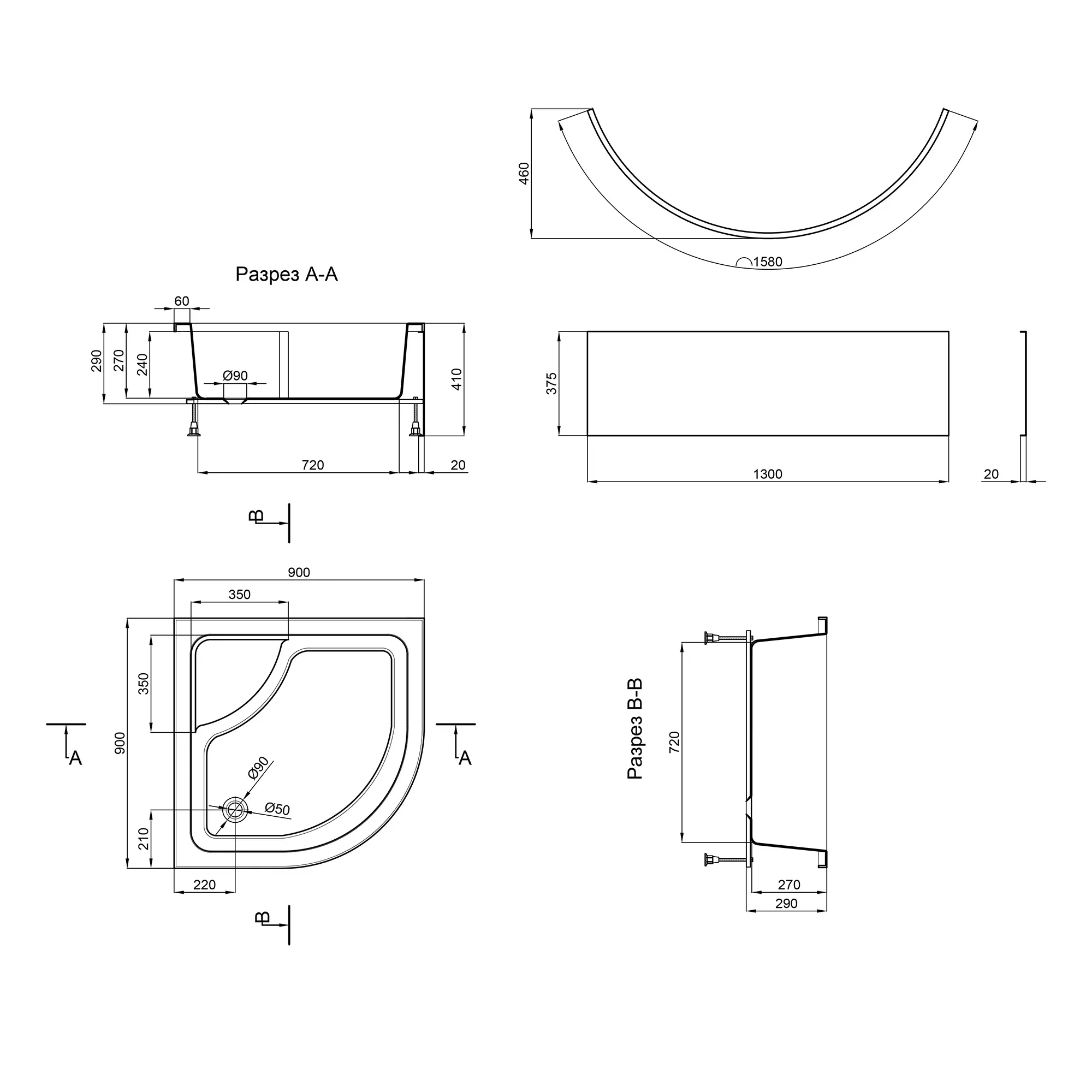 Душовий піддон Lidz Kupala з панеллю LKUST909041SET має напівкруглу обтічну форму, завдяки якій простір у ванній використовується максимально ефективно. Піддон виготовлений з білого акрилу, панель виготовлена з білого ABS пластику. Виріб має гарну термоізоляцію і стійкий до механічних пошкоджень. Піддон має отвір під сифон. Ніжки піддону регулюються за висотою. Панель приховує простір між підлогою та душовим піддоном, який утворюється під час монтажу.