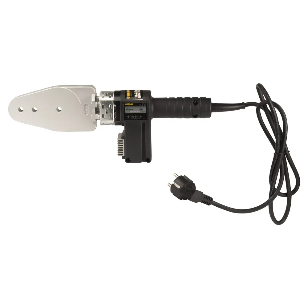 Паяльник призначений для зварювання пластикових труб діаметром від 20 мм до 63 мм з потужністю 800Вт.