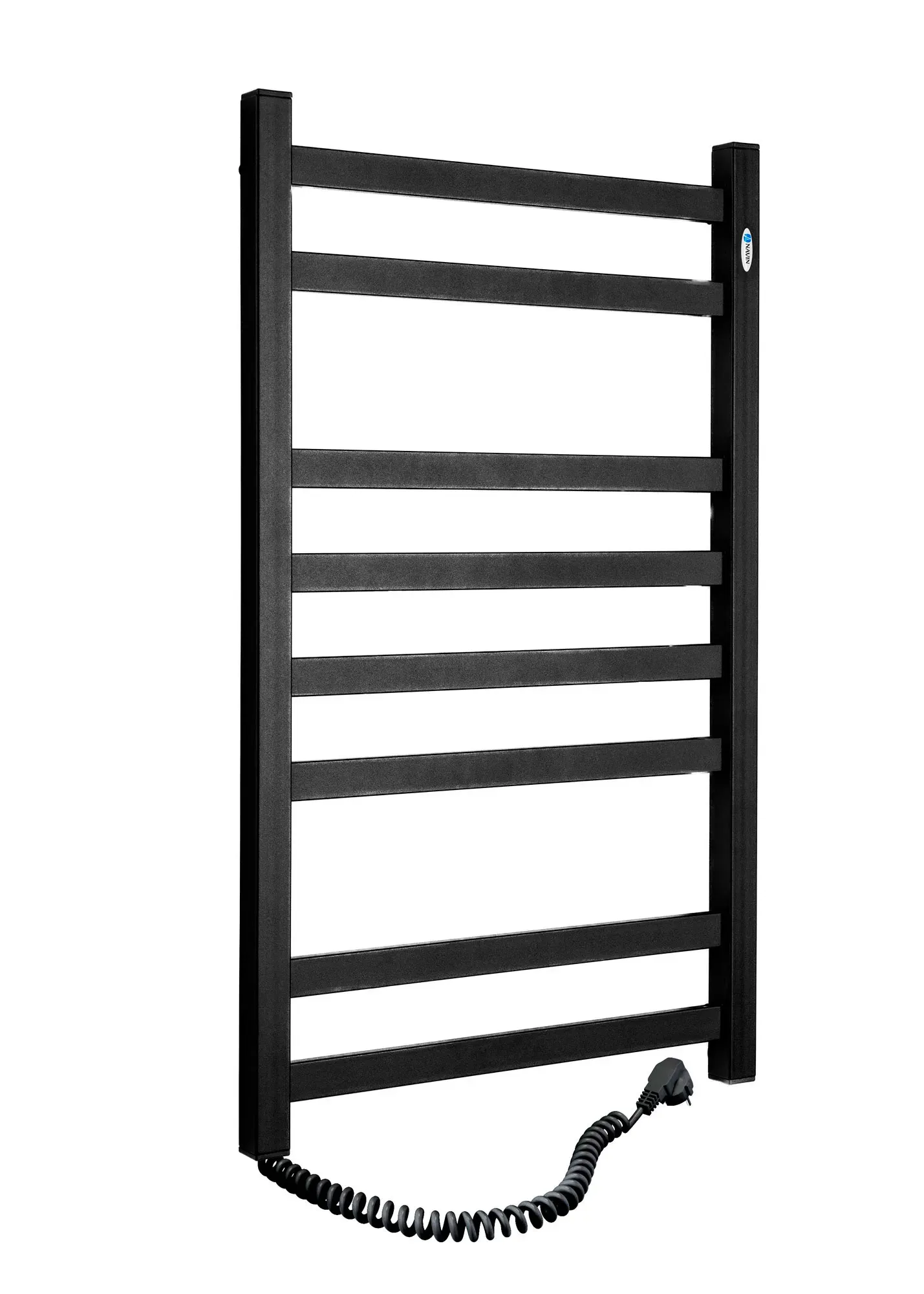 Рушникосушка Авангард 480х800 (розташування шнура з вилкою — ліворуч, колір — чорний муар) від українського виробника NAVIN виготовлена з вуглецевої сталі, яка відрізняється високою якістю і міцністю. Модель має надійне порошкове покриття. Товщина стінки колекторів (стійок) і перемичок сушарки дорівнює 1,5 мм.