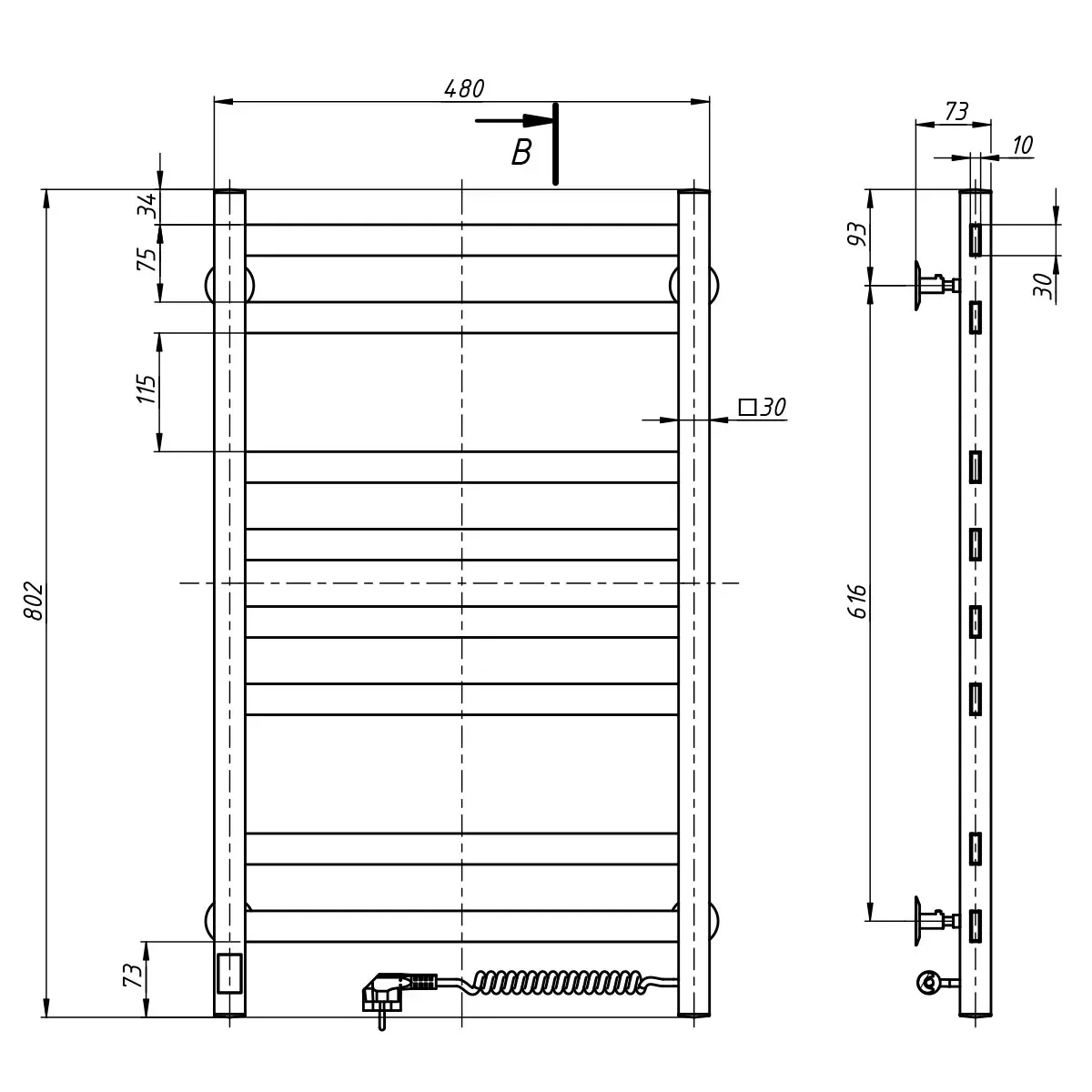 Електрична сушарка для рушників NAVIN Авангард — яскравий зразок мінімалізму. Модель має бічні колектори (стійки), виконані з профільної квадратної труби 30х30 мм, а перемички — з прямокутних трубок 30х10 мм. Це створює просту, строгу й доконечно привабливу геометричну гармонію. Продумане розташування й оптимальні розміри елементів надають рушникосушкам Авангард лаконічність, монументальність і однозначність форми.