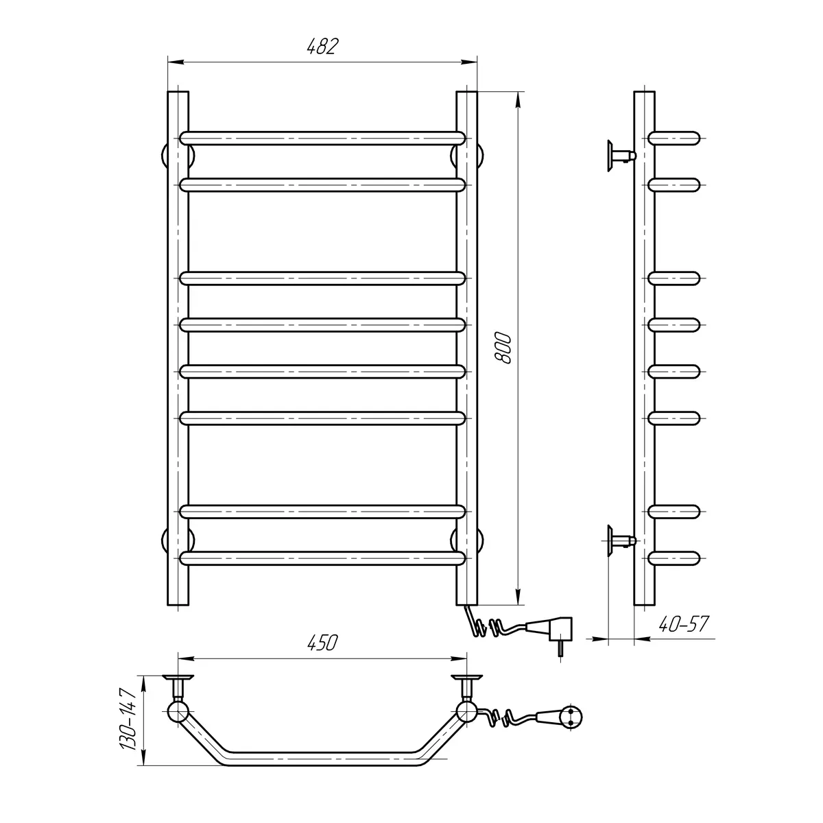 Електрична рушникосушка Блюз 480х800 від українського виробника NAVIN виготовлена з вуглецевої сталі, яка відрізняється високою якістю і міцністю. Модель має порошкове покриття. Товщина стінки перемичок рушникосушарки складає 1,5 мм, а стійок 2 мм.