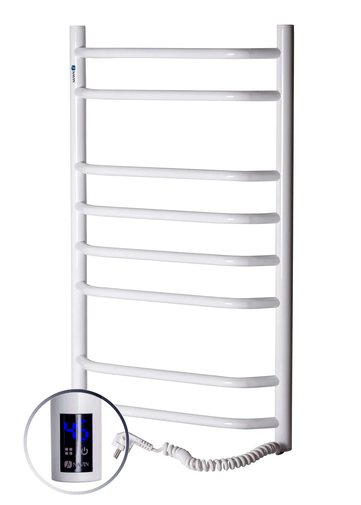 Електрична рушникосушка Блюз 480х800 сенсор з таймером, від українського виробника NAVIN виготовлена з вуглецевої сталі, яка відрізняється високою якістю і міцністю. Модель має порошкове покриття. Товщина стінки перемичок рушникосушарки складає 1,5 мм, а стійок 2 мм.