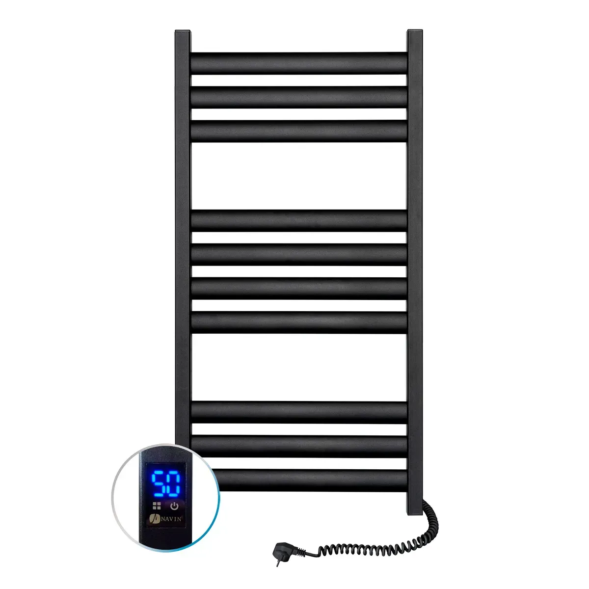 Рушникосушка Ellipse 500х1000 Sensor (колір — чорний муар; розташування шнура з вилкою —праворуч) від українського виробника NAVIN виготовлена з вуглецевої сталі, яка відрізняється високою якістю й міцністю. Модель має надійне порошкове покриття. Товщина стінки колекторів (стійок) і перемичок сушарки дорівнює 1,5 мм.