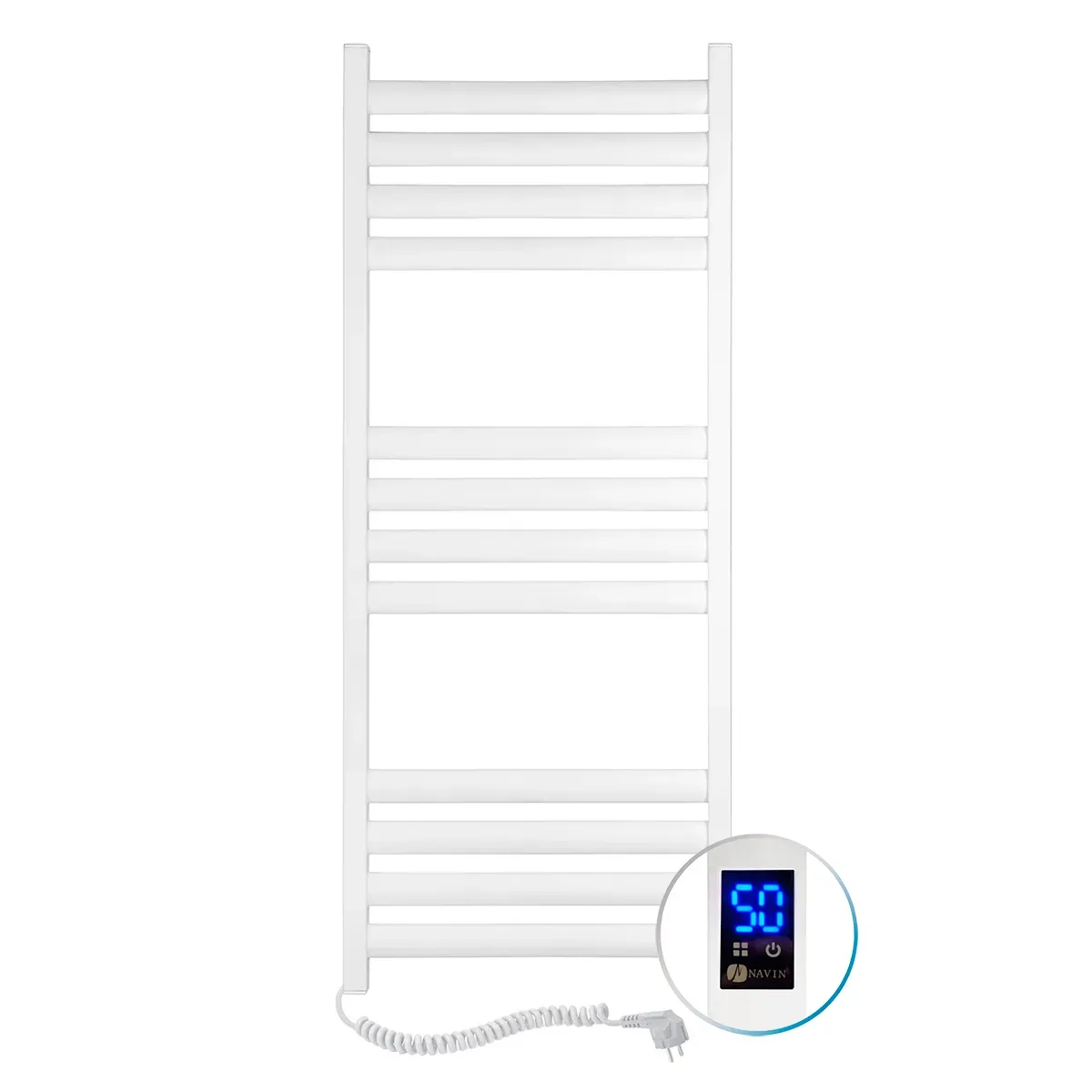 Рушникосушка Ellipse 500х1200 Sensor (колір — білий оксамит; розташування шнура з вилкою — ліворуч) від українського виробника NAVIN виготовлена з вуглецевої сталі, яка відрізняється високою якістю й міцністю. Модель має надійне порошкове покриття. Товщина стінки колекторів (стійок) і перемичок сушки для рушників дорівнює 1,5 мм.