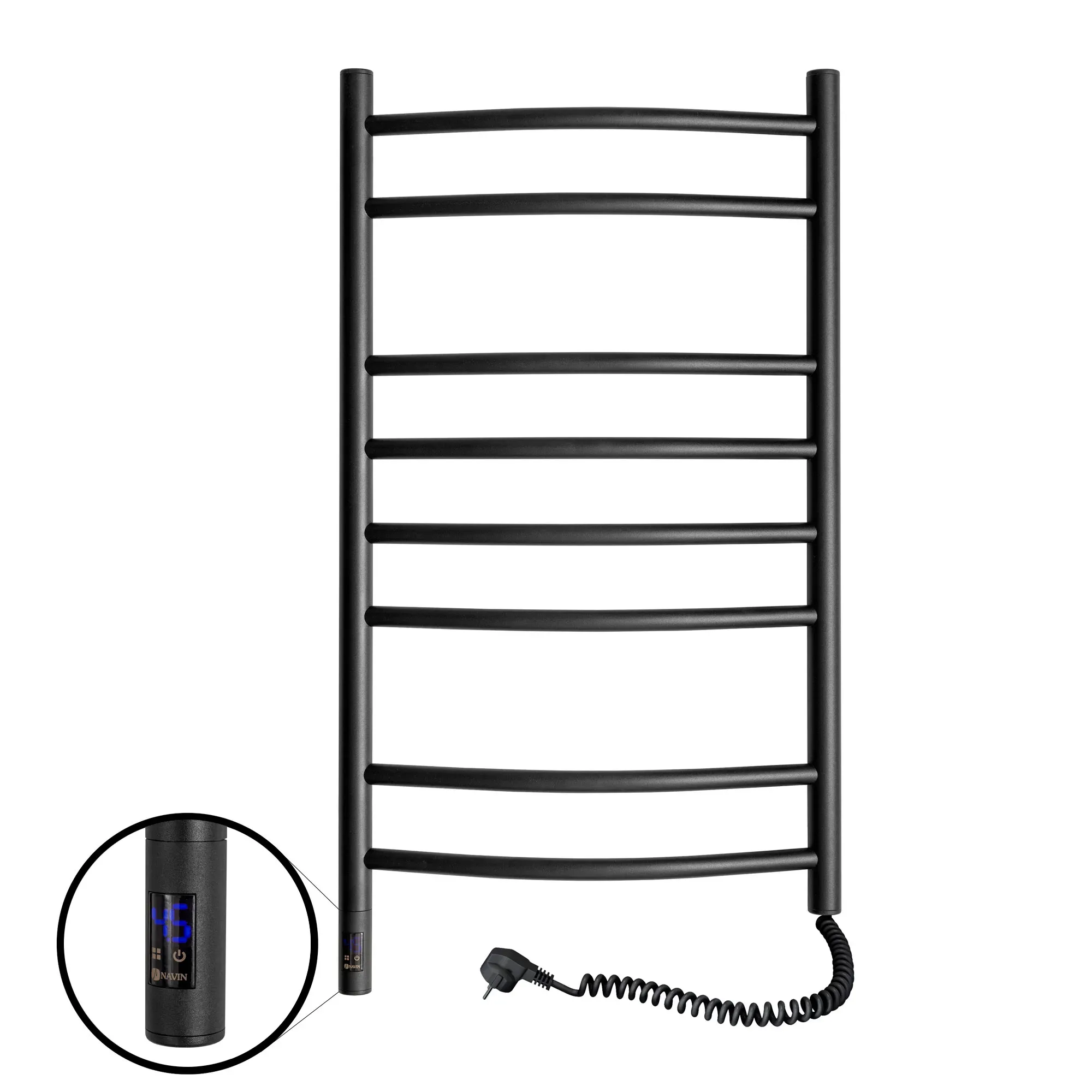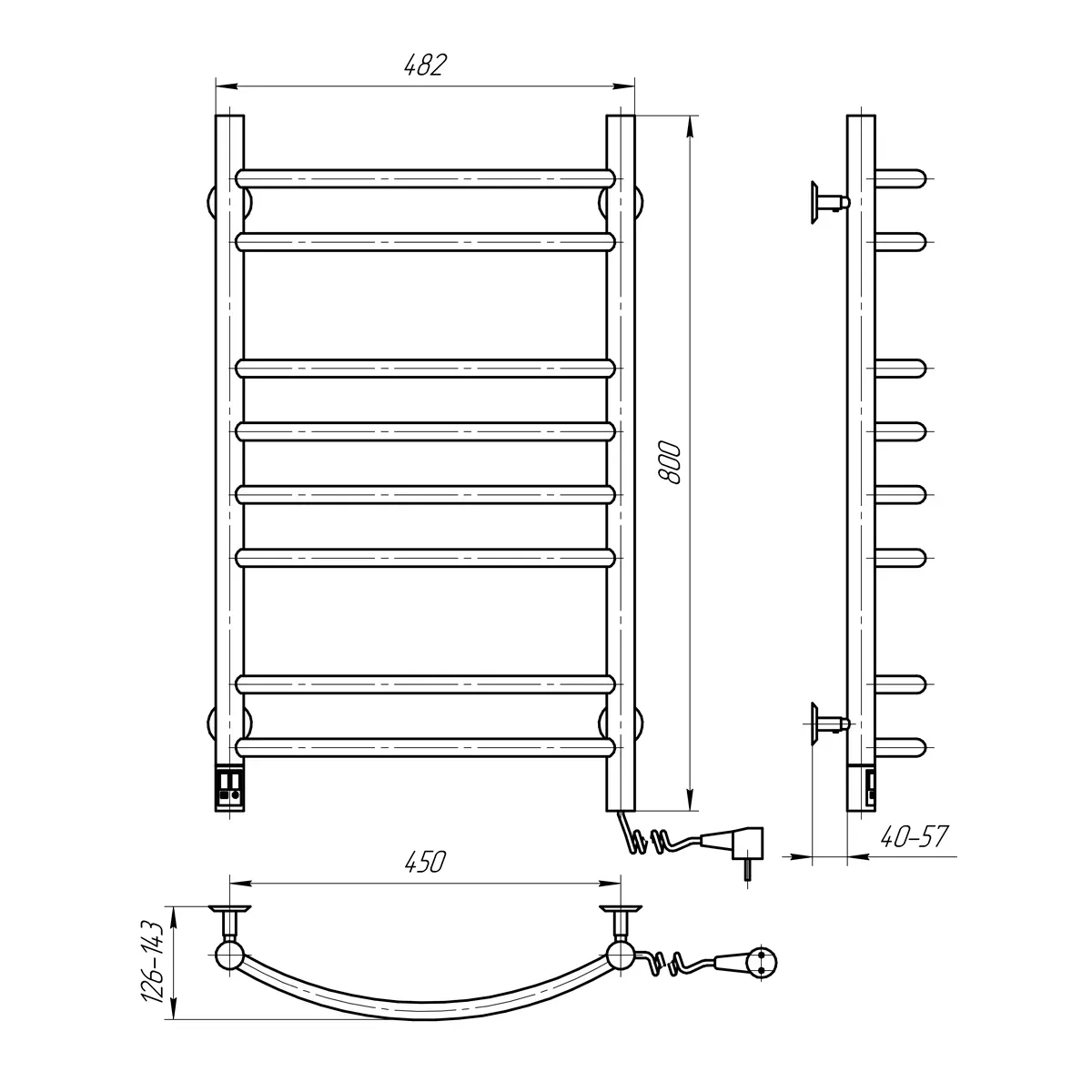 Рушникосушка Камелія 480х800 Sensor (розташування шнура з вилкою — праворуч) виготовлена з вуглецевої сталі високої якості й міцності. Модель має порошкове покриття (колір — чорний муар). Товщина стінки колекторів (стійок) і перемичок сушарки дорівнює 1,5 мм.