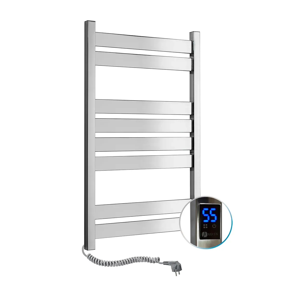 Сушарка для рушників Navin Largo 500х800 Sensor з таймером (розташування шнура з вилкою — ліворуч, колір — хром) від українського виробника NAVIN виготовлена з нержавіючої сталі, яка є стійкою до подряпин і механічних пошкоджень, а також має високу антикорозійну стійкість. Товщина стінки перемичок рушникосушарки складає 1,5 мм, а бокових колекторів (стійок) — 2 мм. Сушарка має дзеркальну поліровану поверхню, отриману шляхом високоточного електроплазмового полірування.