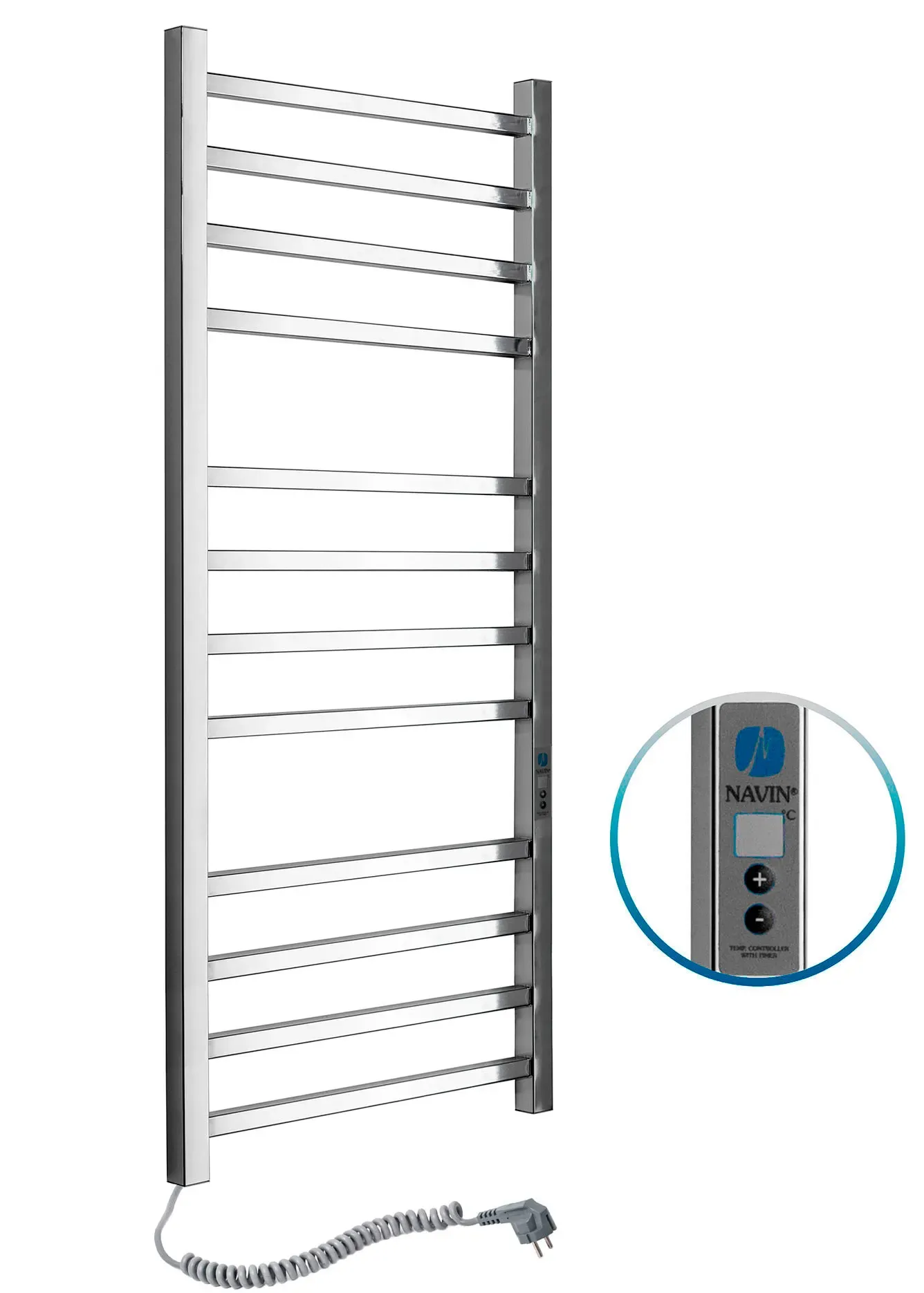 Рушникосушка Loft 500х1200 Digital ліва від українського виробника NAVIN виготовлена з нержавіючої сталі, яка відрізняється високою якістю і міцністю. Товщина стінки перемичок рушникосушарки складає 1,5 мм, а бокових колекторів 2 мм.