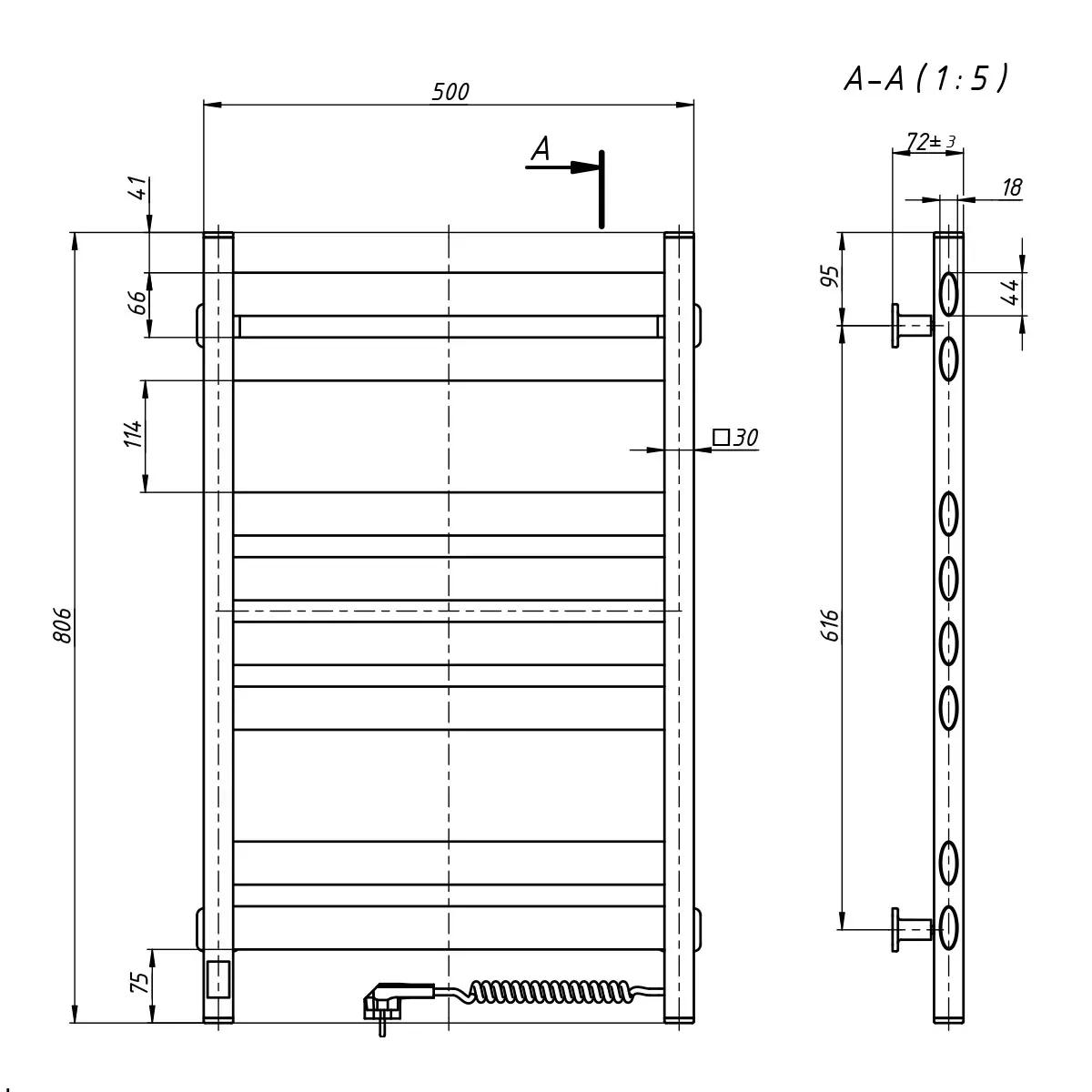 Рушникосушка Ellipse 500х800 Sensor (хром, розташування шнура з вилкою - ліворуч) від українського виробника NAVIN виготовлена з нержавіючої сталі, яка є стійкою до подряпин і механічних пошкоджень, а також має високу антикорозійну стійкість. Товщина стінки перемичок рушникосушки становить 1,5 мм, а бічних стійок (колекторів) - 2 мм. Сушарка має дзеркальну поліровану поверхню, отриману шляхом високоточного електроплазмового полірування.. Товщина стінки колекторів (стійок) і перемичок сушарки дорівнює 1,5 мм.